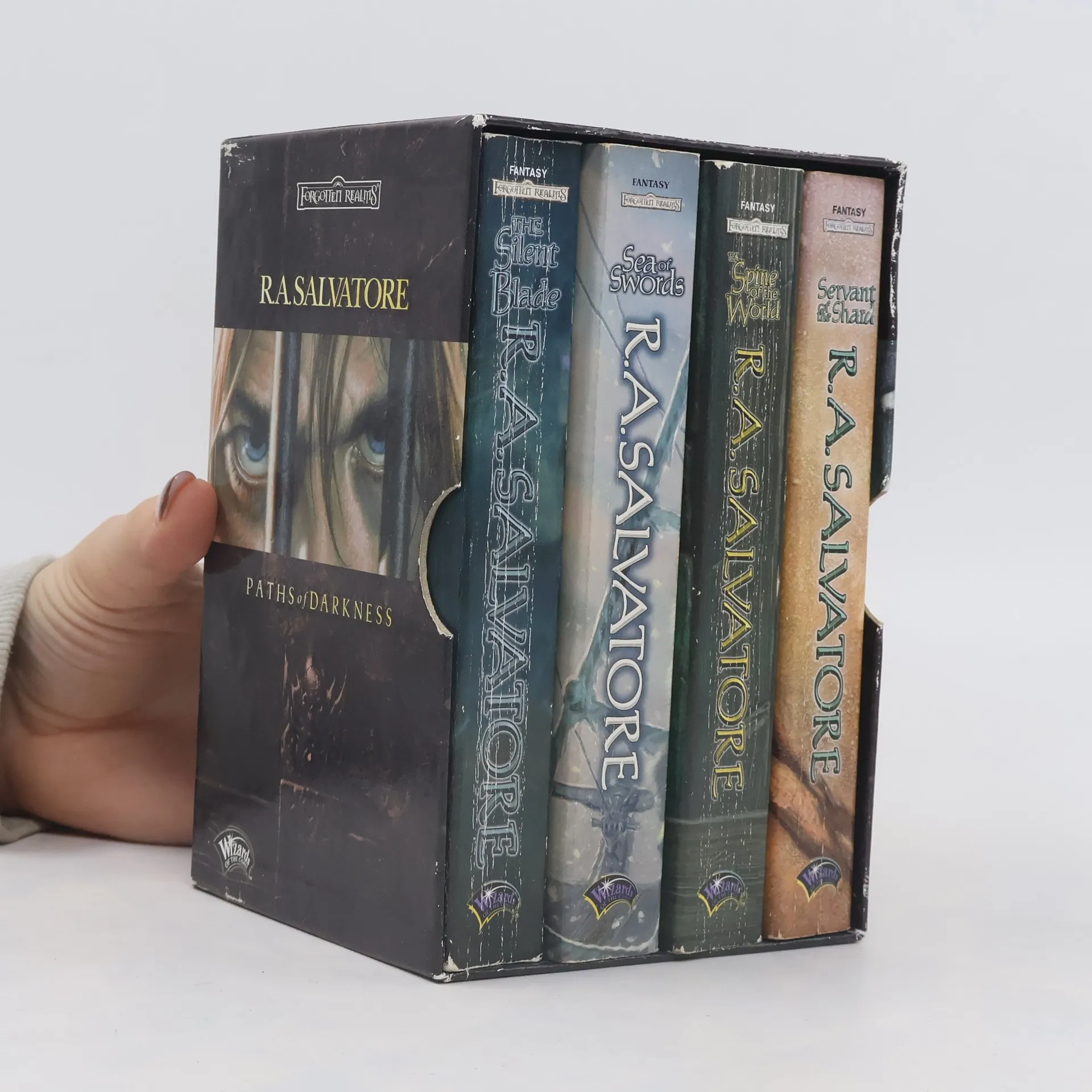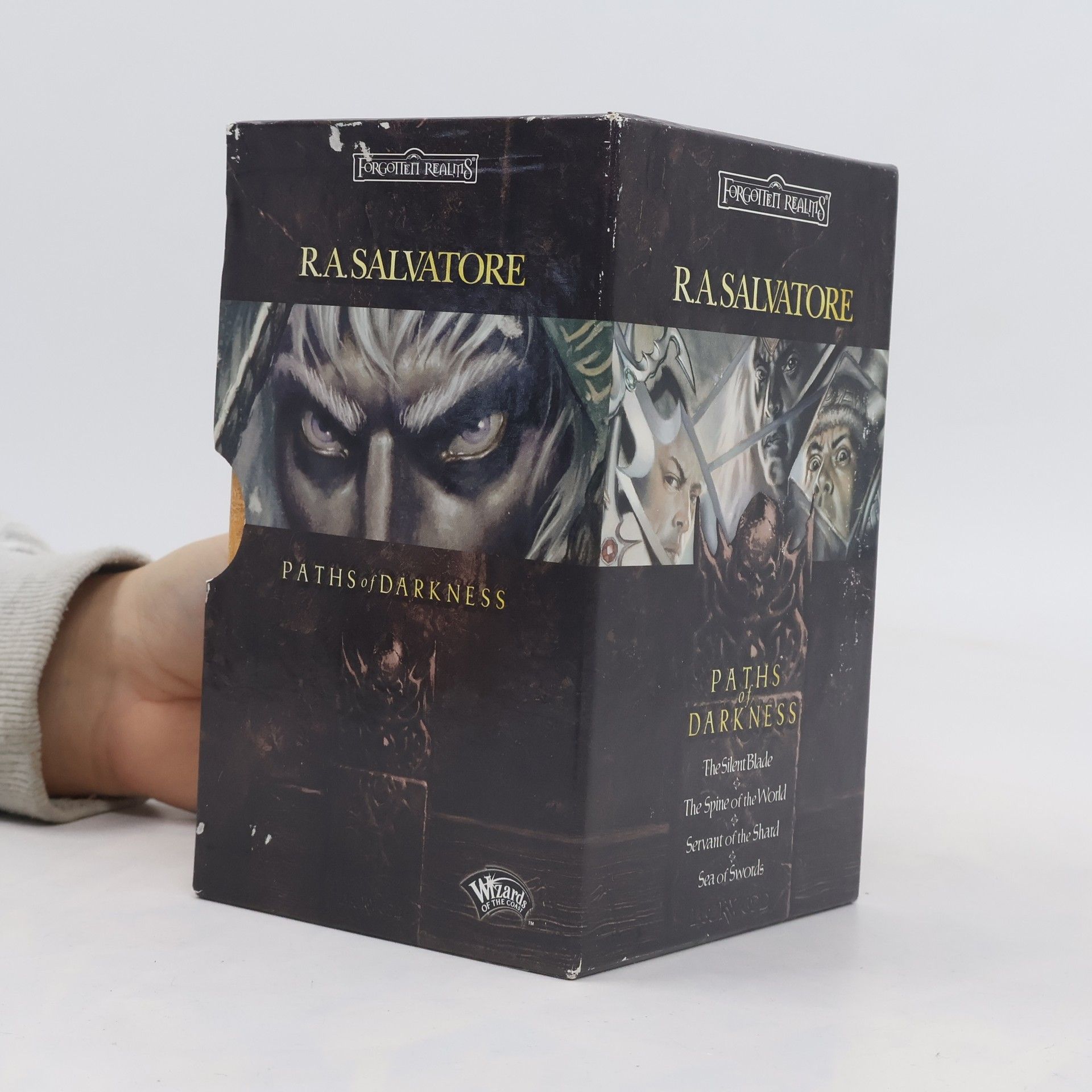 A slip-covered box set contains the four best-selling Drizzt Do'Urden adventures The Silent Blade, The Spine of the World, Servant of the Shard, and Sea of Swords.