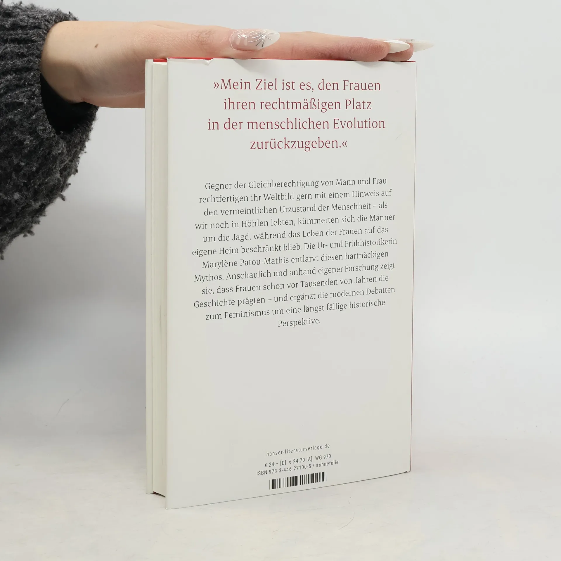 Wie Frauen die Geschichte prägten – und warum wir nichts davon wissen. Ein feministischer Blick auf die UrgeschichteÜber weite Strecken der Geschichte sind Frauen unsichtbar – erst recht in der Ur- und Frühgeschichte. Es sind Männer, die jagten, die Werkzeuge und Waffen erfanden, die Höhlenmalereien hinterließen und als Erfinder zivilisatorischer Errungenschaften gelten. Frauen, so das gängige Bild, hielten sich im Heim auf und damit: im Hintergrund. Marylène Patou-Mathis rückt dieses Bild gerade und zeigt: Es gibt keine Fakten, die diese Annahmen stützen. Neue archäologische Funde haben ergeben, dass prähistorische Frauen mitnichten das unterworfene Geschlecht waren, zu dem männliche Wissenschaftler der Neuzeit sie gemacht haben. Eine überfällige Analyse der weiblichen Unsichtbarkeit, die den Frauen zu ihrem rechtmäßigen Platz in der Geschichte verhilft.