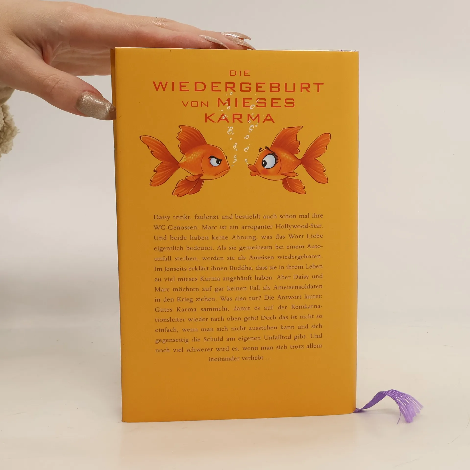 Die Wiedergeburt von «Mieses Karma» Die Gelegenheitsschauspielerin Daisy Becker trinkt, raucht und bestiehlt auch schon mal ihre WG-Genossen. Mit Mitte zwanzig hat sie noch immer keine Ahnung, was sie mit ihrem Leben eigentlich anfangen will. Noch viel weniger weiß sie, was das Wort „Liebe“ eigentlich bedeutet. Und sie wird es in diesem Leben auch nicht mehr erfahren, gerät sie doch in einen tödlichen Autounfall mit dem arroganten Hollywoodstar Marc Barton. Daisy und Marc werden als Ameisen wiedergeboren und erfahren von Buddha, dass sie in ihrem Leben zu viel mieses Karma angesammelt haben. Allerdings haben die beiden nur wenig Lust, fortan als Ameisensoldaten in den Krieg zu ziehen. Außerdem wollen sie um jeden Preis verhindern, dass Daisys bester Freund, von dem sie erst jetzt erkennt, was sie für ihn empfindet, und Marcs Ehefrau ein Paar werden. Was also tun? Gutes Karma sammeln, um die Reinkarnationsleiter über die Stufen Goldfisch-Storch-Schnecke hochzuklettern und wieder zu Menschen zu werden! Doch das ist nicht so einfach, wenn man sich nicht ausstehen kann und sich gegenseitig die Schuld an dem Unfalltod gibt. Und noch viel schwerer wird es, wenn man sich trotz allem ineinander verliebt ... Für alle Fans des Millionensellers «Mieses Karma»: noch mehr Humor und Wahrheit von David Safier.