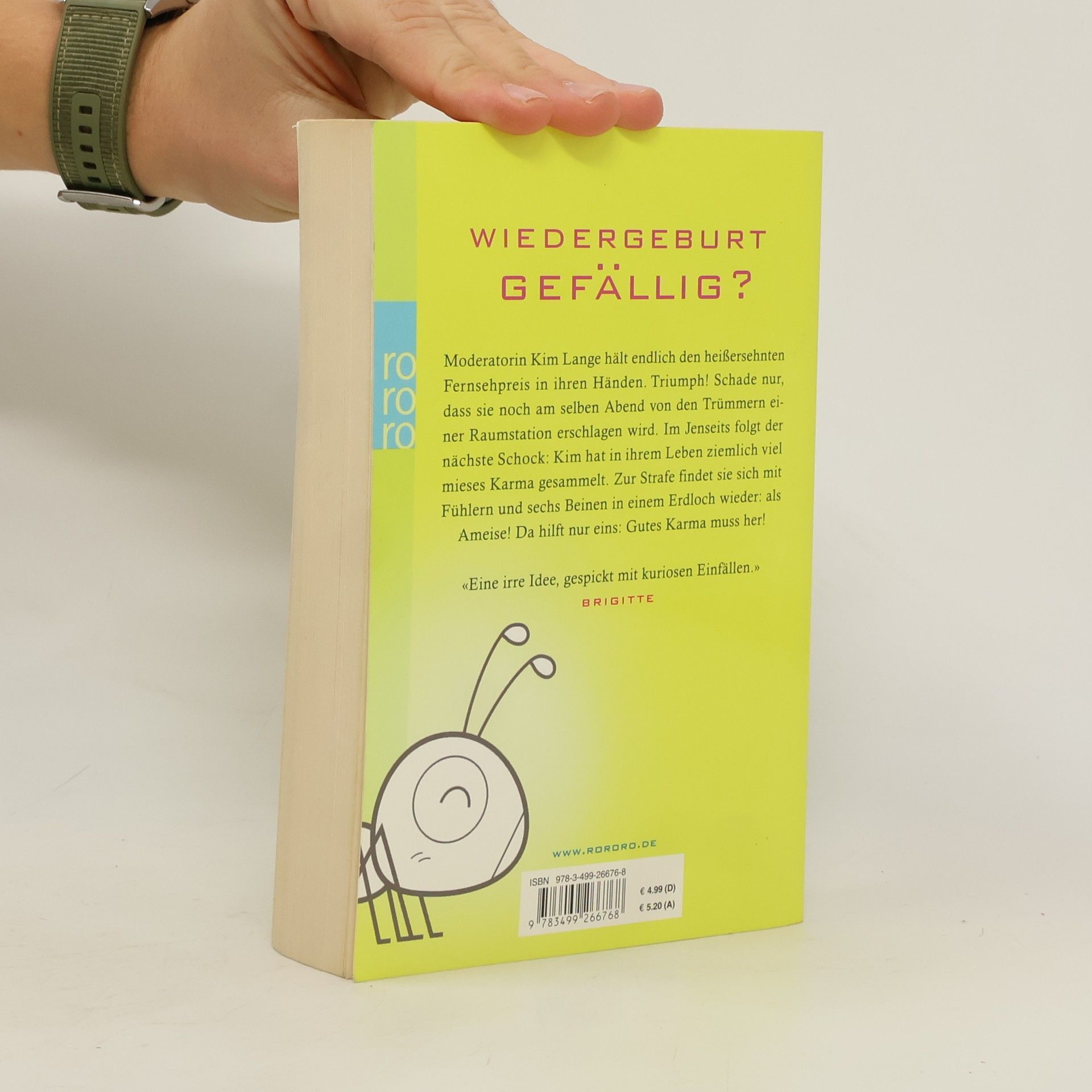 Wiedergeburt gefällig? Moderatorin Kim Lange hält endlich den heißersehnten Fernsehpreis in ihren Händen. Triumph! Schade nur, dass sie noch am selben Abend von den Trümmern einer Raumstation erschlagen wird. Im Jenseits folgt der nächste Shock: Kim hat in ihrem Leben ziemlich viel mieses Karma gesammelt. Zur Strafe findet sie sich mit Fühlern und sech Beinen in einem Erdloch wieder: Als Ameise! Da hilft nur eins: Gutes Karma muss her!