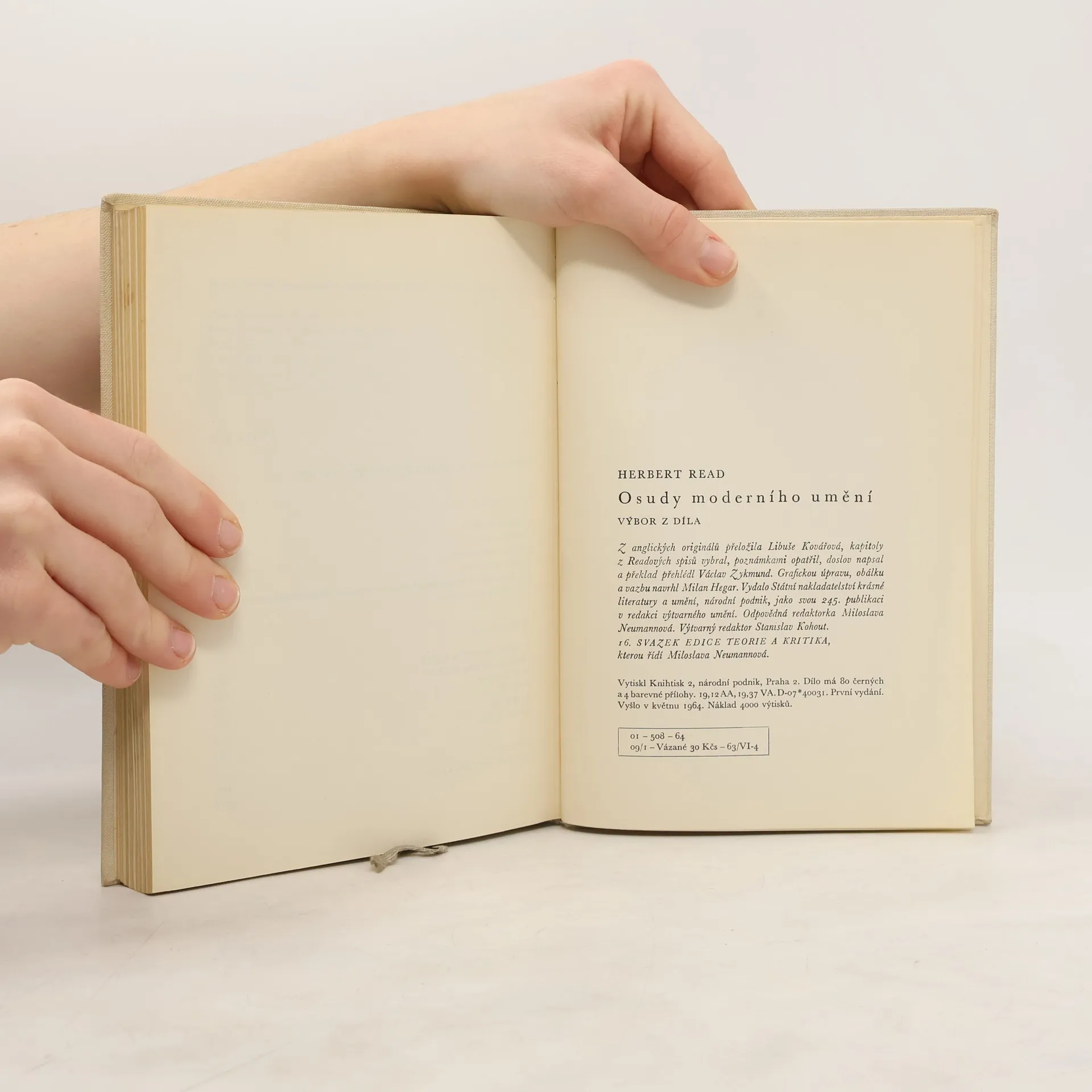 Výbor z teoretických a kritických statí anglického teoretika umění. Obsahuje eseje o charakteru, vztazích a problémech umění a menší monografické studie o moderním umění jako celku i jeho jednotlivých čelných představitelích (P. Gauguinovi, P. Picassovi, P. Kleeovi, H. Moorovi) Kapitoly zReadových spisů vybral, poznámkami opatřil, doslov napsal Václav Zykmund. 80 s. obr. příl.
