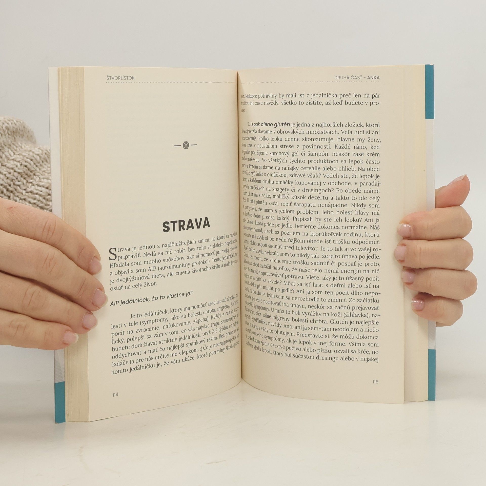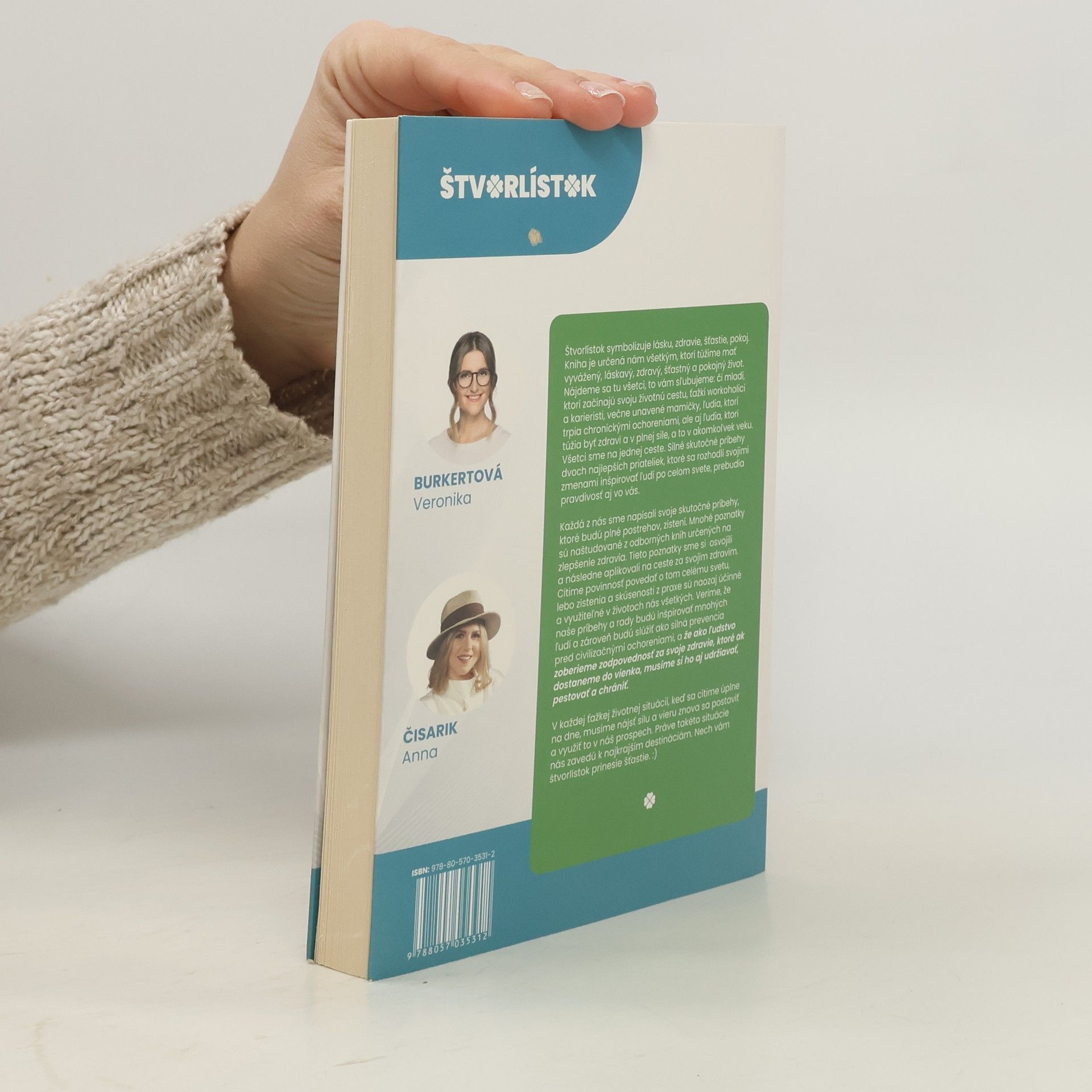 Máte depresiu, ste totálne bez energie, k tomu sa pridá aj autoimunitná choroba? Myslíte si, že z tohto začarovaného kruhu už nevystúpite a už nikdy nebudete zdraví a plní elánu? Že vás čaká len život plný utrpenia bez radosti zo života? Kniha Štvorlístok vás presvedčí o opaku a zmení váš čiernobiely pohľad na ochorenia. Silné bojovníčky tu vyrozprávali svoje skutočné príbehy a vy budete svedkami toho, ako z depresií, beznádeje, nekonečných bolestí a noci plných sĺz premenili svoje choroby a utrpenie na život plný zdravia a radosti z každého jedného dňa. Sú to pútavé príbehy najlepších priateliek, v ktorých si každý nájde to svoje, čo v ňom zarezonuje. Kniha je obohatená o rozhovory s odborníkmi na zdravie, ktorí prezentujú najnovšie klinické poznatky a prinášajú množstvo informácií, ktoré vám pomôžu starať sa o svoje zdravie v rámci prevencie, alebo v prípade choroby môžu poslúžiť ako návod na vyliečenie. Text z knihy: V tejto dobe je ešte viac dôležité a nutné zamerať sa na vnútornú schránku bytia, hľadať svoju podstatu, vyzdvihnúť a spoznať svoju dušu a vyliečiť jej zranenia, dopĺňať telu potrebné živiny, vitamíny, minerály, dopriať telu kvalitný odpočinok. Aj keď tieto veci sa očami vidieť nedajú, sú oveľa dôležitejšie ako tie, ktoré tvoria náš zovňajšok. Ak sa postaráte o vnútornú krásu a rast, tak máte postarané aj o vonkajšiu krásu, tá príde prirodzene a bude rozpoznávaná hneď na prvý pohľad.