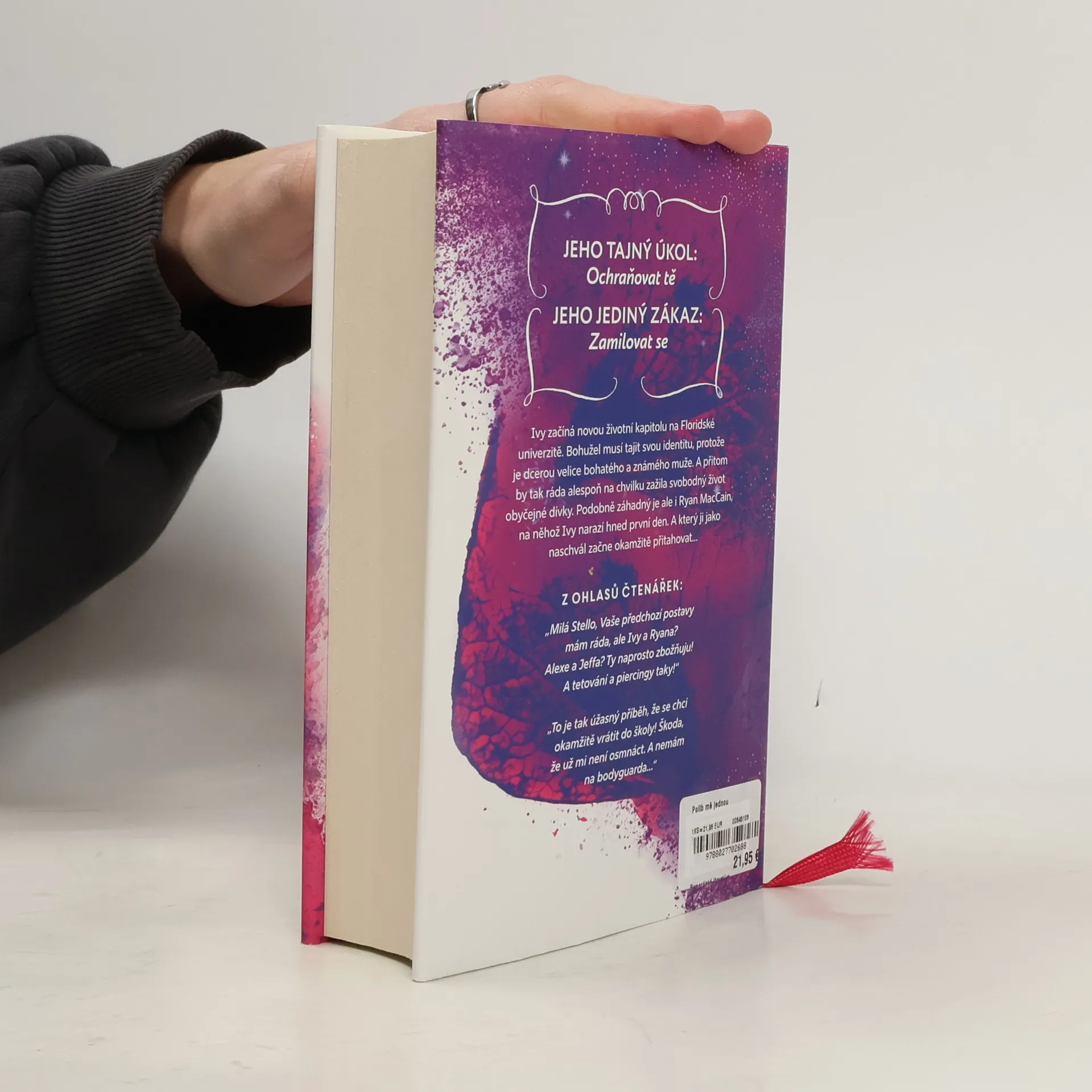 Ivy by nikdy nečekala, že hned první den na Floridské univerzitě přejde přes cestu svému muži snů. Ryan MacCain není jen sexy, drzý a tajemně potetovaný – k tomu všemu ho na koleji ubytují ve vedlejším pokoji… Každý pohled jeho zelených očí, každý náhodný dotyk jí rozbuší srdce. Ale stejně jako Ivy není ani Ryan tím, za koho se vydává. Jako bohatá dědička je totiž Ivy na univerzitě inkognito. A Ryan je její tajný osobní strážce.