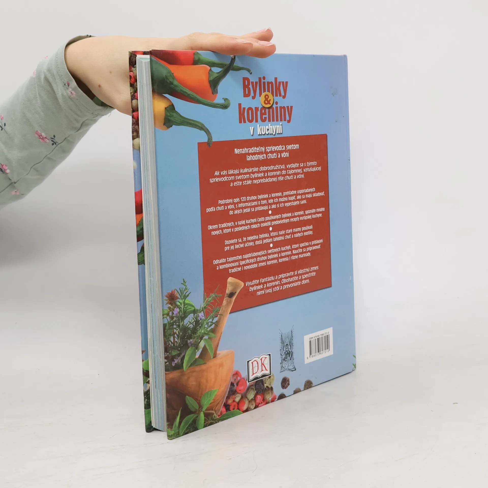 Nenahraditeľný sprievodca svetom lahodných chutí a vôní Ak vás lákajú kulinárske dobrodružstvá, vydajte sa s týmto sprievodcom svetom byliniek a korenín do tajomnej, vzrušujúcej a ešte stále neprebádanej ríše chutí a vôní. Podrobný opis 120 druhov byliniek a korenín, prehľadne usporiadaných podľa chutí a vôní, s informáciami o tom, kde ich možno kúpiť, ako sa majú skladovať, do akých jedál sa pridávajú a ako si ich vypestujete sami. Okrem tradičných, v našej kuchyni často používaných byliniek a korenín, spoznáte mnoho nových, ktoré v posledných rokoch osviežili predovšetkým recepty európskej kuchyne. Dozviete sa, že nejedna bylinka, ktorú naše staré mamy používali pre jej liečivé účinky, dodá jedlám lahodnú chuť a nádych exotiky. Odhalíte tajomstvo najobľúbenejších svetových kuchýň, ktoré spočíva v pridávaní a kombinovaní špecifických druhov byliniek a korenín. Naučíte sa pripravovať tradičné i novodobé zmesi korenín, korenia i rôzne marinády.