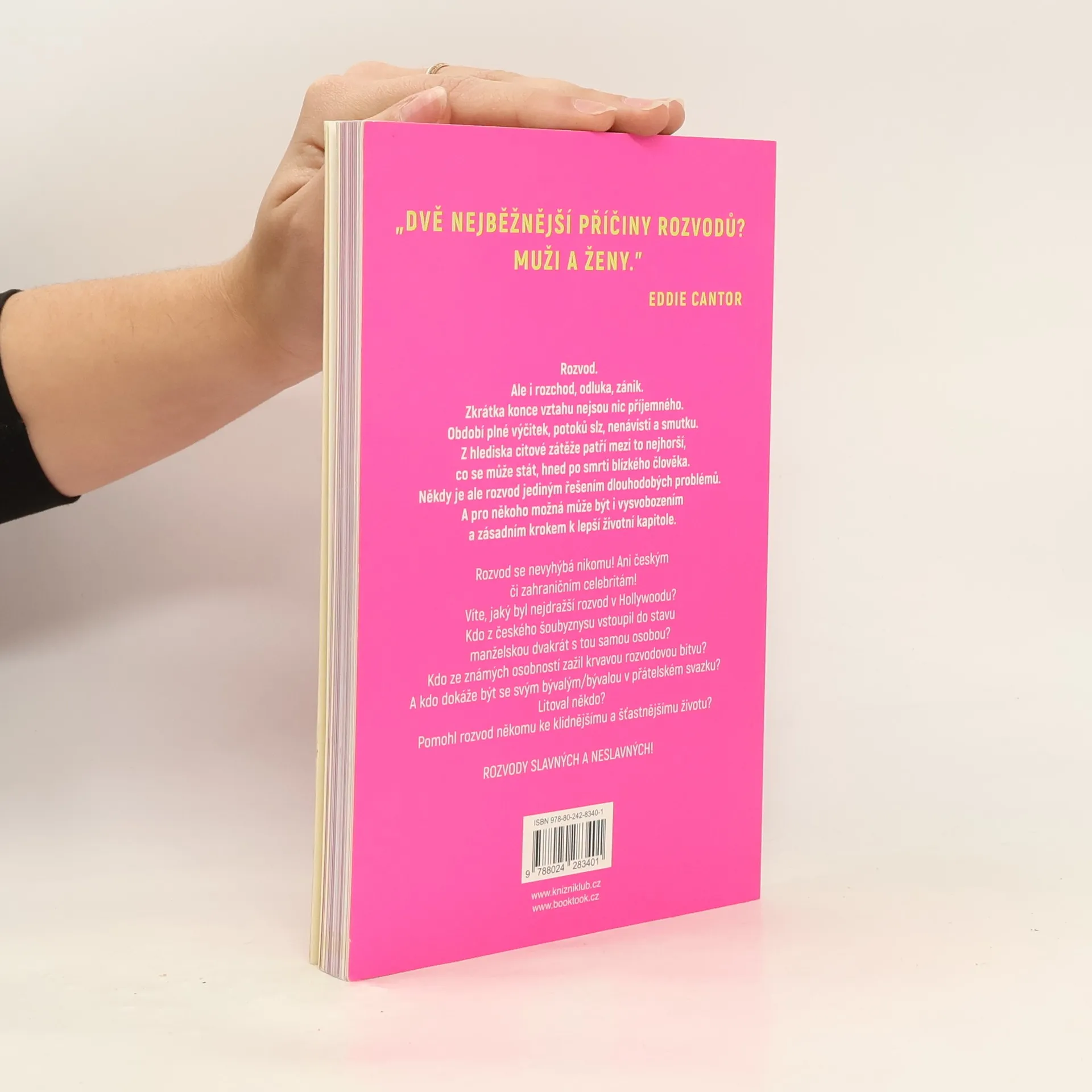 Díky této knize budete vědět o rozvodech všechno! Rozebírá se jedenáct typů rozvodů: banální nevěra, odcizení manželů při výchově dětí, uspěchaná svatba, svazek s cizincem a mnoho dalších modelových situací. Po každém popsaném příběhu následuje krátký komentář elitní právničky a známého vztahového poradce – kniha tak slouží i jako poradna, díky níž naberete pro život užitečné informace. Na závěr každé kapitoly je uveden příběh z reálného života: konkrétní slavný pár, jemuž se daný typ rozvodu nevyhnul.