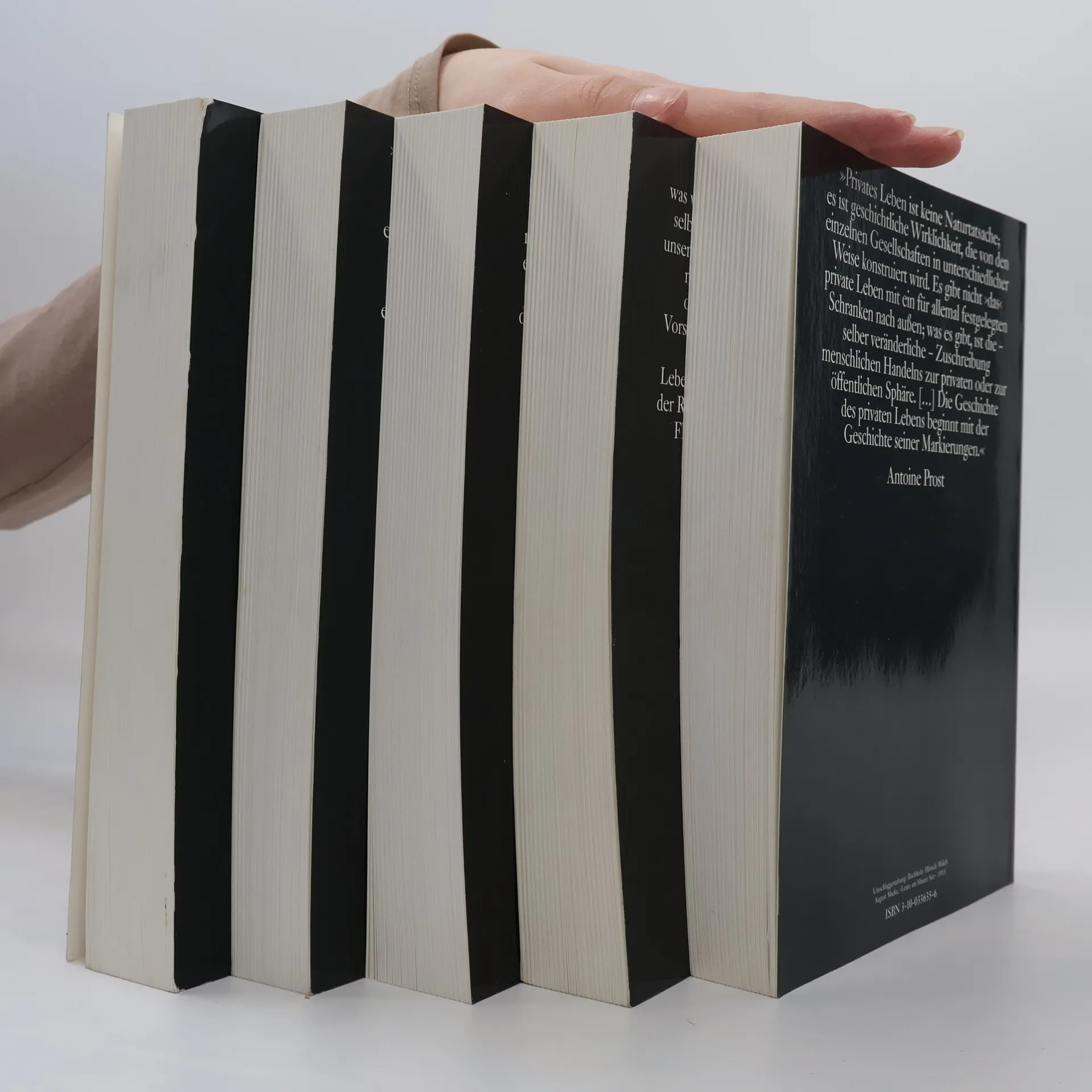 »Privates Leben ist keine Naturtatsache; es ist geschichtliche Wirklichkeit, die von den einzelnen Gesellschaften in unterschiedlicher Weise konstruiert wird. Es gibt nicht das private Leben mit ein für allemal festgelegten Schranken nach außen; was es gibt, ist die - selber veränderliche - Zuschreibung menschlichen Handelns zur privaten oder zur öffentlichen Sphäre. ... Die Geschichte des privaten Lebens beginnt mit der Geschichte seiner Markierungen.« Antoine Prost »Diese große, eindrucksvolle Unternehmung wird man einmal zu den fortdauernden Werken der Historiographie in unserer Zeit zählen.« "Times Literary Supplement"