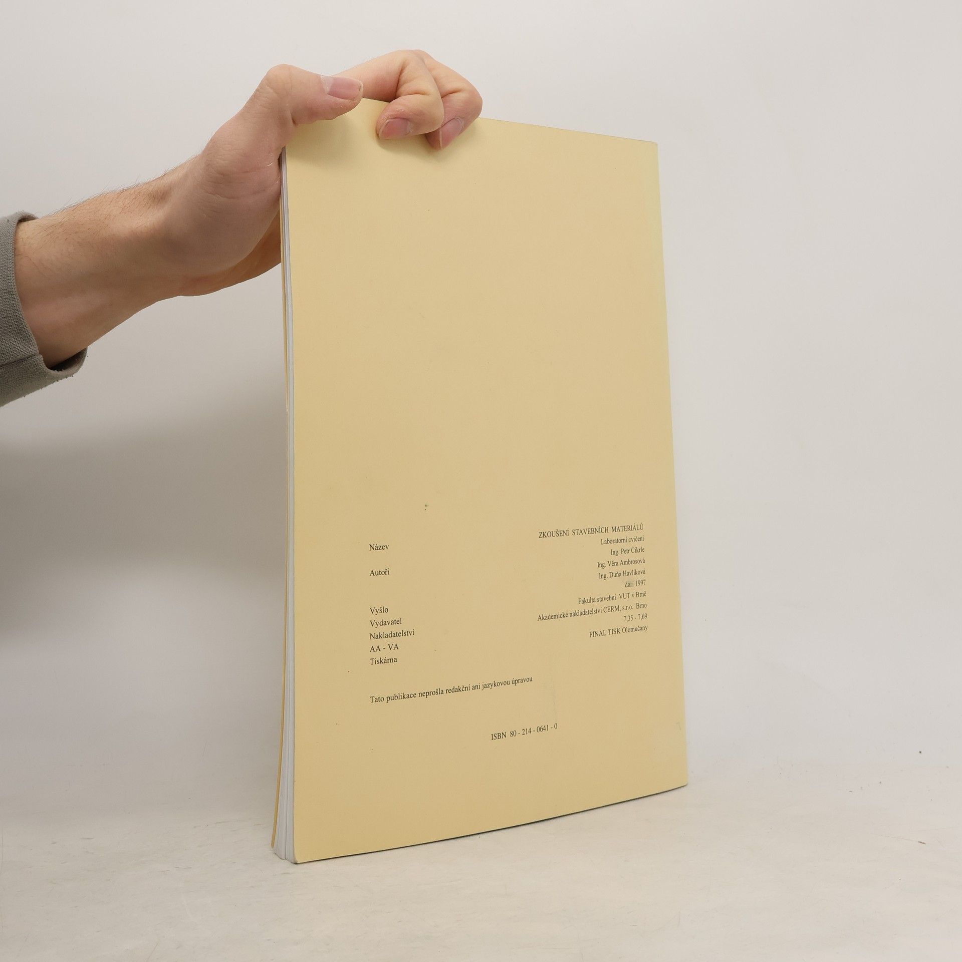Zkoušení stavebních materiálů. Laboratorní cvičení, Petr Cikrle, Věra Ambrosová, Duňa Havlíková