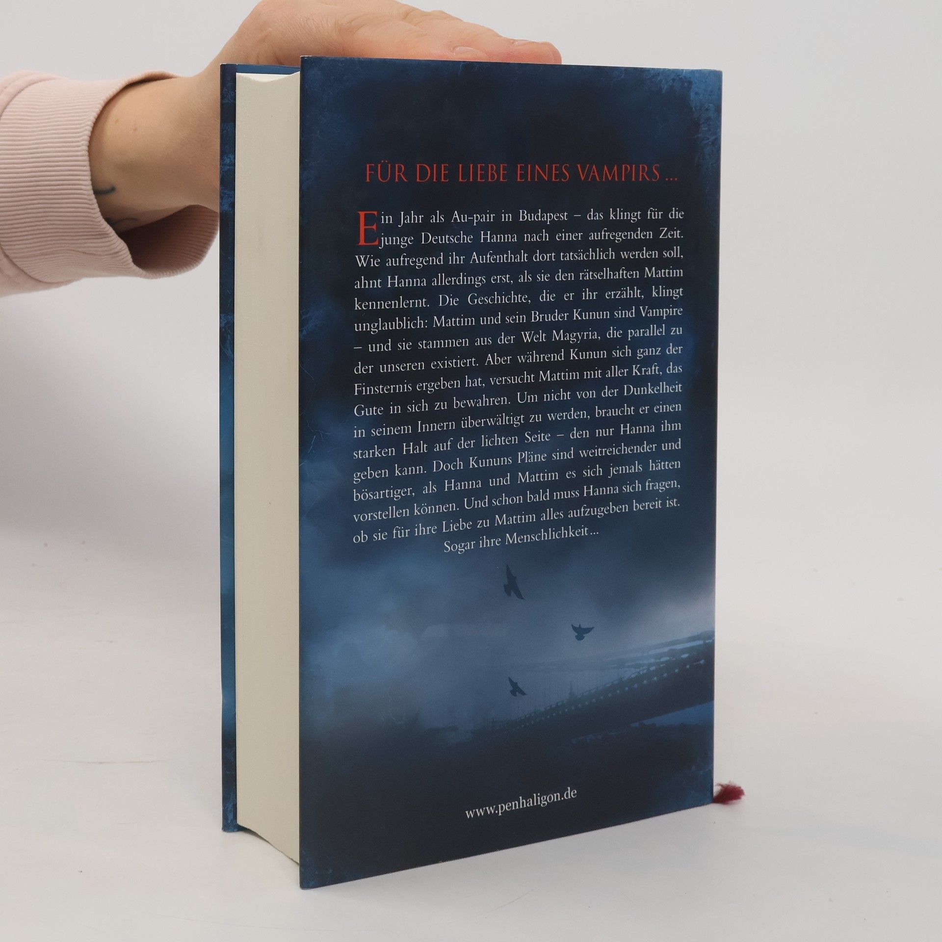 WAS WIRST DU FÜR DEINE LIEBE OPFERN? Ein Jahr als Au-pair in Budapest - das klingt für die junge Deutsche Hanna nach einer schönen und aufregenden Zeit. Wie aufregend ihr Aufenthalt in der ungarischen Hauptstadt tatsächlich werden soll, ahnt sie allerdings erst, als sie eines Nachts Mattim begegnet. Denn der rätselhafte junge Mann erzählt ihr eine unglaubliche Geschichte - von Schatten, von einem geheimnisvollen Tor und von einer Stadt, die parallel zu Budapest existiert. Und von Kunun, seinem Bruder, der wie er selbst ein Schatten - ein Vampir - ist, der sich im Gegensatz zu Mattim jedoch ganz in den Dienst der Finsternis gestellt hat. Mattim hingegen versucht, das Gute in sich zu bewahren. Um jedoch nicht von der Dunkelheit in seinem Inneren überwältigt zu werden, braucht er einen starken Halt auf der lichten Seite - den nur Hanna ihm geben kann. Doch Kununs Pläne sind weitreichender und bösartiger, als sie es sich jemals hätten vorstellen können. Und schon bald muss Hanna sich fragen, ob sie bereit ist, für ihre Liebe zu Mattim alles aufzugeben. Sogar ihre Menschlichkeit Romantisch, gruselig und absolut im Trend. Der neue deutsche Vampir-Liebesroman vor der stimmungsvollen Kulisse Budapests.