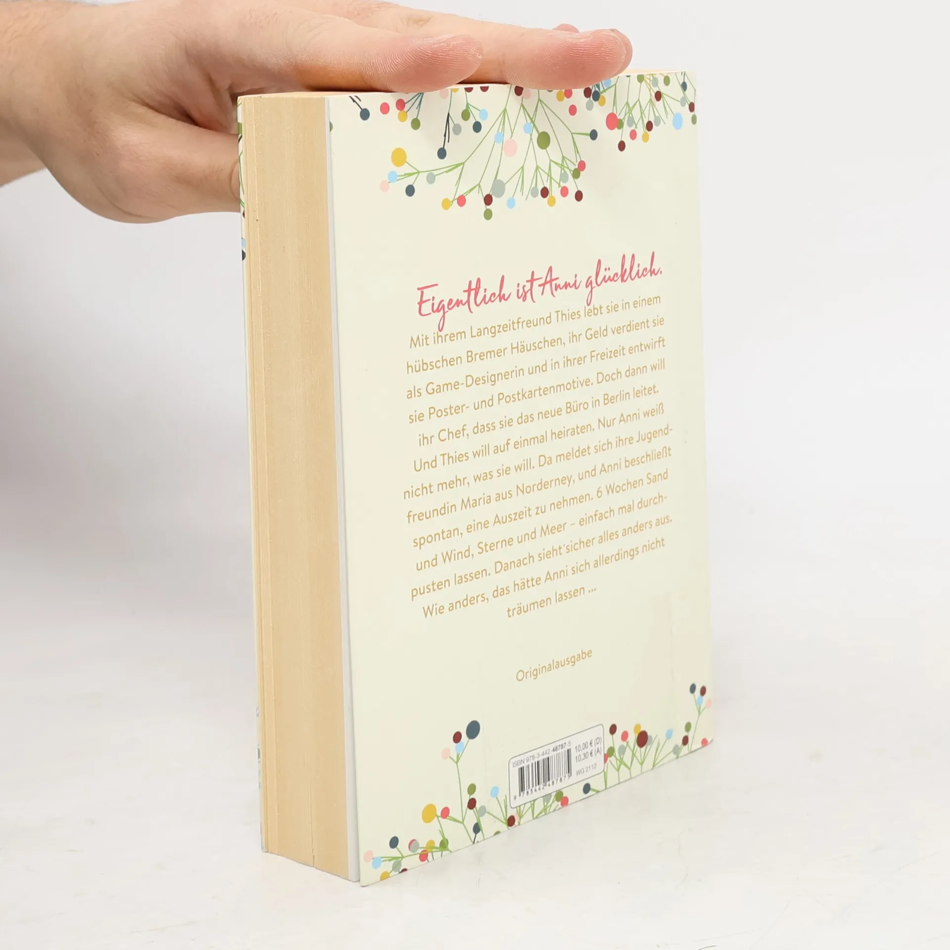 Eigentlich ist Anni glücklich. Mit ihrem Langzeitfreund Thies lebt sie in einem hübschen Bremer Häuschen, ihr Geld verdient sie als Game-Designerin und in ihrer Freizeit entwirft sie Poster- und Postkartenmotive. Doch dann will ihr Chef, dass sie das neue Büro in Berlin leitet. Und Thies will auf einmal heiraten. Nur Anni weiß nicht mehr, was sie will. Da meldet sich ihre Jugendfreundin Maria aus Norderney, und Anni beschließt spontan, eine Auszeit zu nehmen. 6 Wochen Sand und Wind, Sterne und Meer – einfach mal durchpusten lassen. Danach sieht sicher alles anders aus. Wie anders, das hätte Anni sich allerdings nicht träumen lassen ...