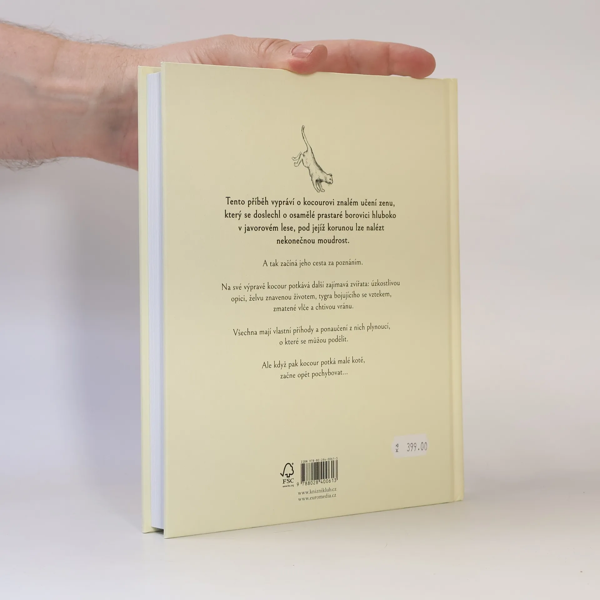 Opravdu je vždy to, oč usilujeme, také právě to, co potřebujeme? Najde kocour, znalec filozofie zenu, bájnou borovici, o níž se proslýchá, že mezi jejími větvemi lze dosáhnout nekonečného poznání, harmonie a vnitřního naplnění? Vydejte se spolu s ním na inspirativní cestu v této novince od autora celosvětově úspěšné knihy Panda a dráček.