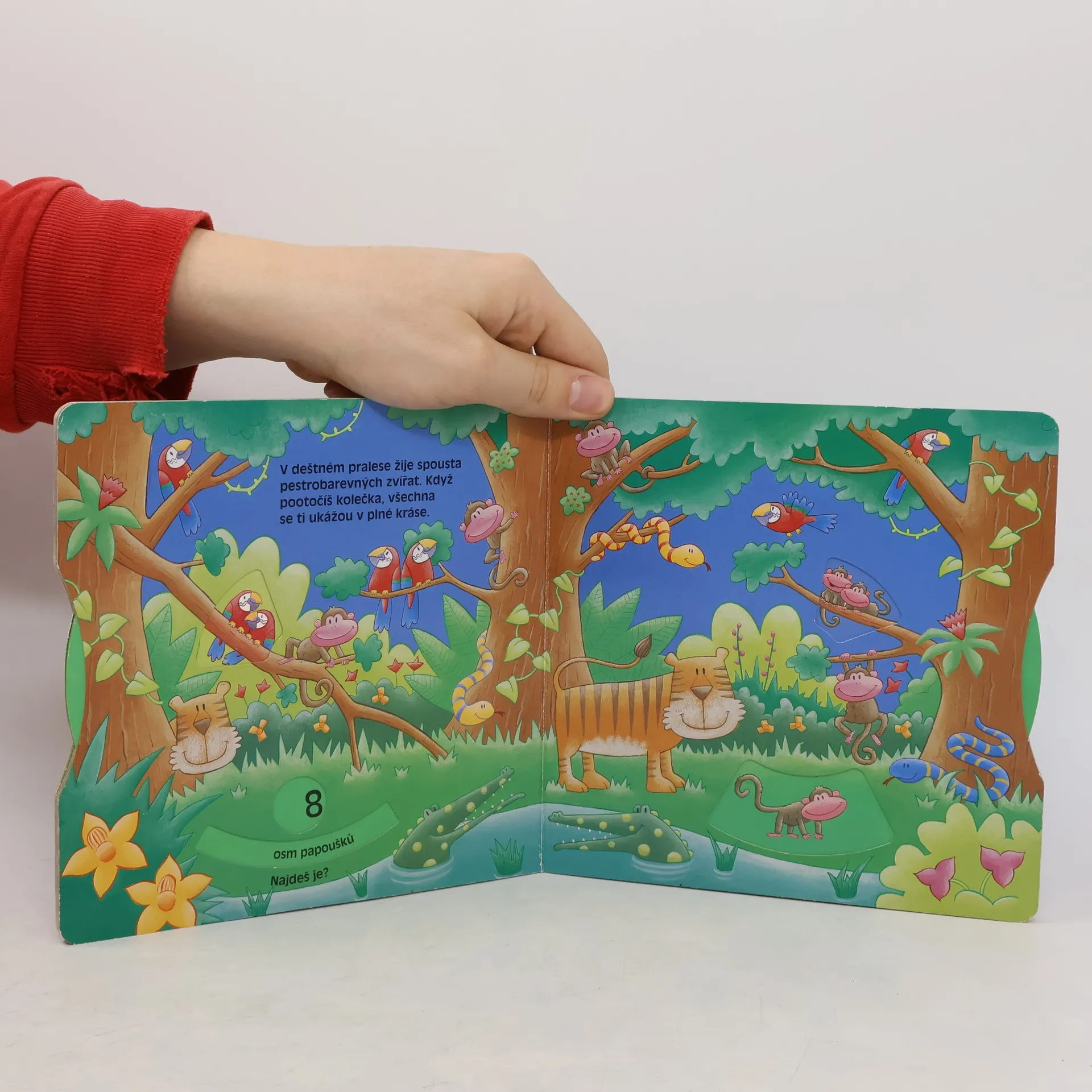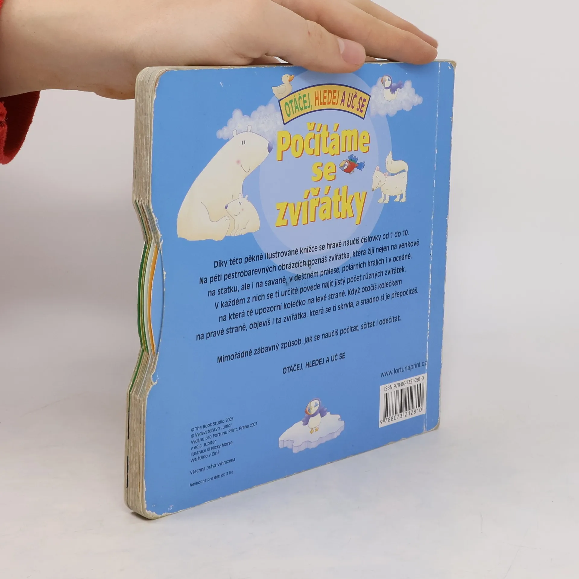 Díky této pěkně ilustrované knížce se hravě naučíš číslovky od 1 do 10. Na pěti pestrofarebných obrázcích poznáš zvířátka, která žijí nejen na venkově, ale i na savaně, v pralese, polárních krajích i v oceáně. v každém z nich se ti určitě povede najít jistý počet různých zvířátek, na která tě upozorní kolečko na levé straně. Když otočíš kolečkem na pravé straně, obje´víš i ta zvířátky, která se ti skryla.