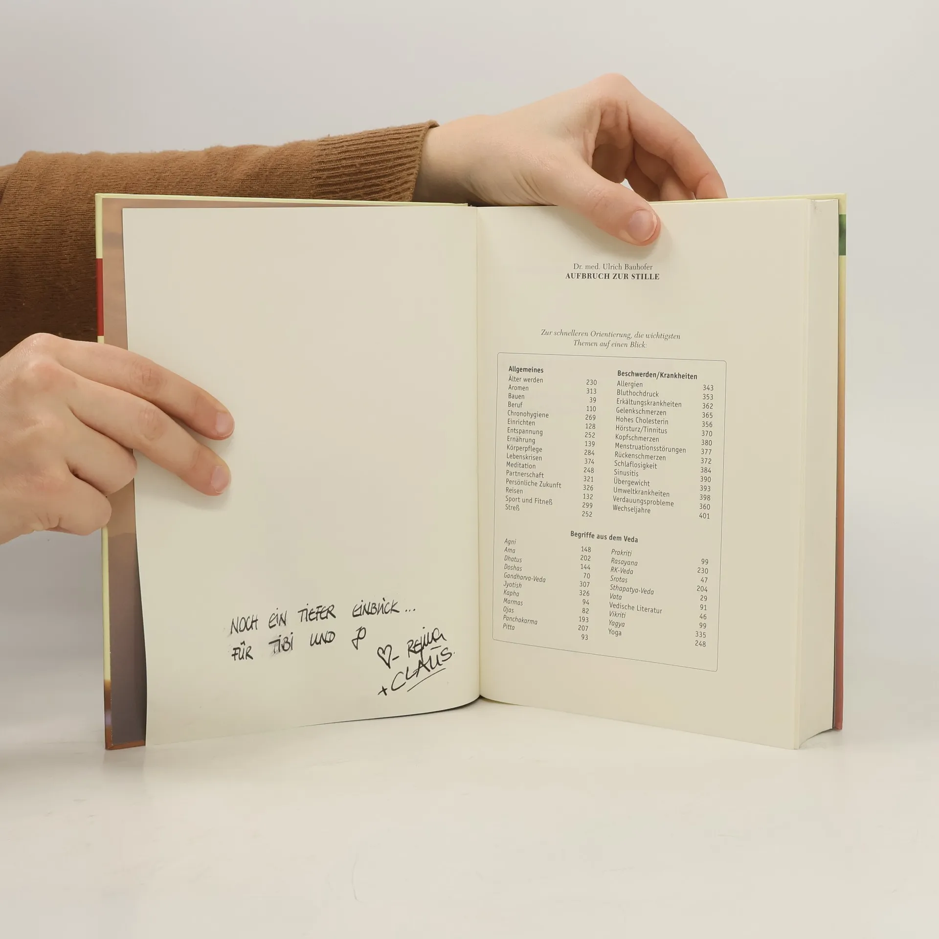 Das thematisch umfassendste Ayur-Veda-Handbuch in deutscher Sprache. Vom renommierten Ayur-Veda-Arzt Dr. med. Ulrich Bauhofer. Ein Ratgeber für ganzheitliches Leben: Was sagen mir die Signale meines Körpers? Was tun gegen Streß? Wie schlafe ich richtig? Welcher Sport ist gut für mich? Welche Musik hilft mir? Wie gestalte ich meinen Arbeitsplatz? Welche Berufswahl fördert mein inneres Gleichgewicht? Wie soll ich mich ernähren? Wo erhole ich mich im Urlaub am besten? Welche Farben machen mich gesund? Wie beeinflußt mich meine Wohnung seelisch? Wie bleibe ich gesund im Alter? Was tun bei Krankheit? Wie prägt mein Biorhythmus mein Wohlbefinden? Wie werde ich attraktiver? Welcher Lebenspartner paßt zu mir? Wie gestalte ich ein harmonisches Familienleben? Wie kann sich meine Zukunft entwickeln? Mit Praxisleitfaden, Illustrationen, Tests mit Antworten, Rezepten, Adressen ...