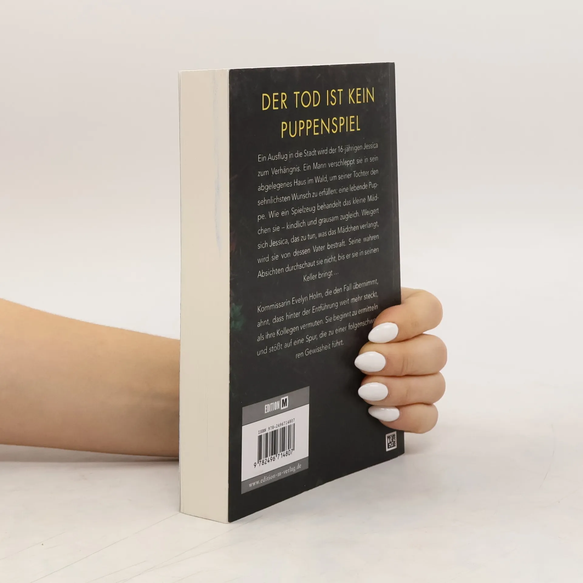 „Der Tod ist kein Puppenspiel“ ist ein abgründiger Psychothriller von Saskia Calden. Die 16-jährige Jessica wird entführt und als lebende Puppe behandelt. Kommissarin Evelyn Holm entdeckt, dass hinter der Entführung dunkle Geheimnisse stecken. Ein packendes Spiel von Macht und Grausamkeit entfaltet sich.