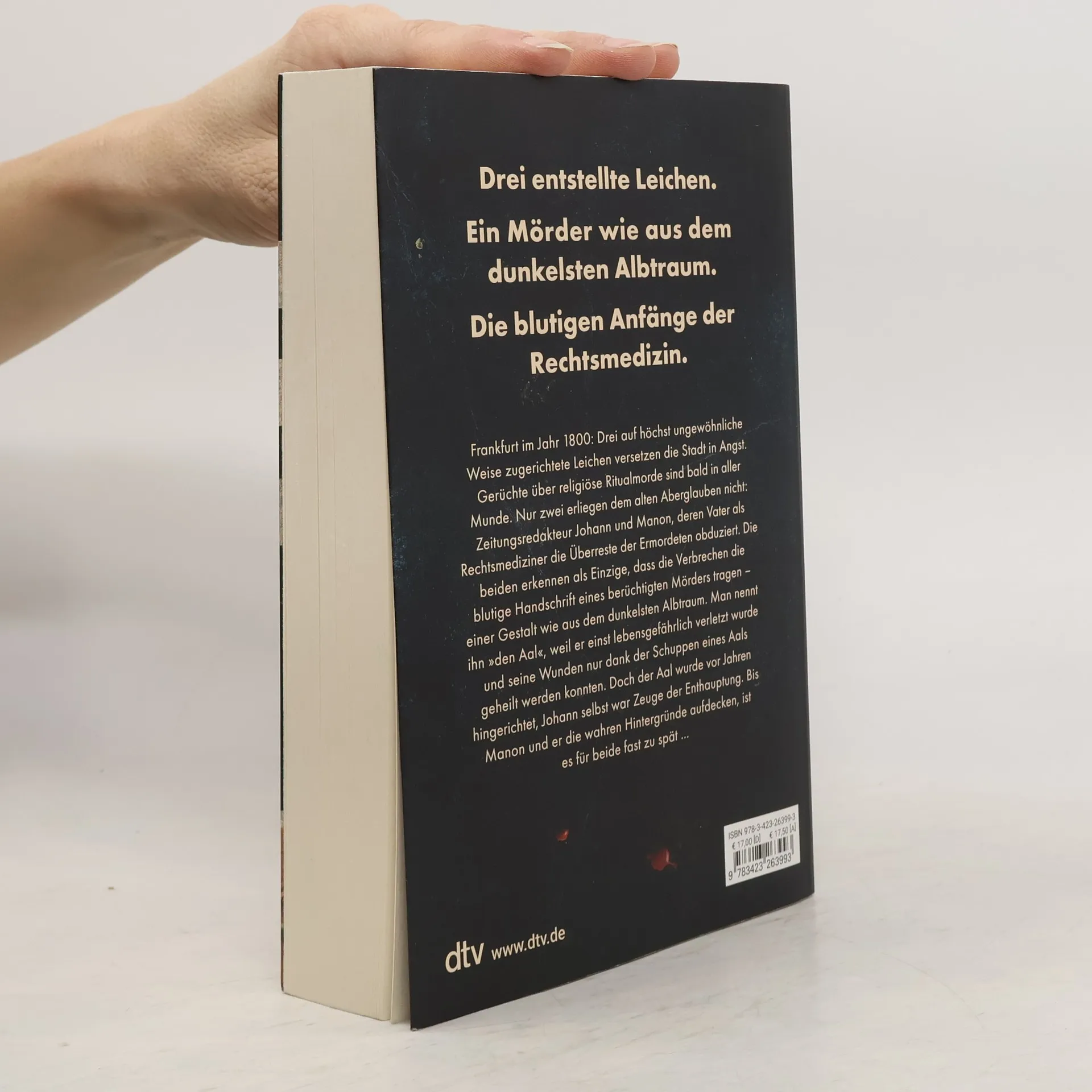 Im Frankfurt des Jahres 1800 versetzen grausam entstellte Leichen die Stadt in Angst. Gerüchte über religiöse Ritualmorde verbreiten sich. Der Zeitungsredakteur Johann und Manon, Tochter eines Rechtsmediziners, entdecken die blutige Handschrift eines berüchtigten Mörders, genannt „der Aal“. Ihre Nachforschungen bringen sie in große Gefahr.