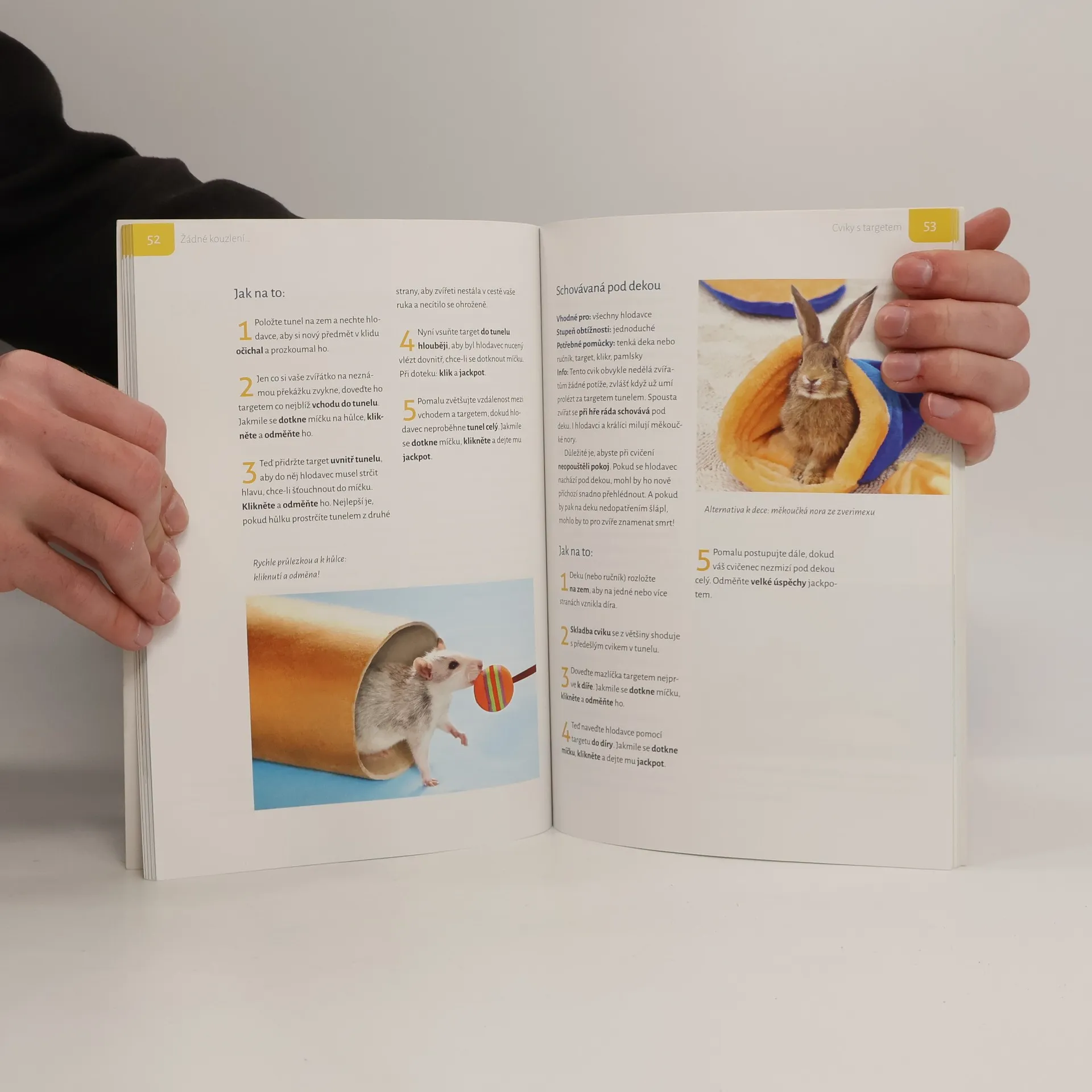 Chcete svého mazlíčka naučit běhat slalom, dát pac, vychovat k čistotnosti, zbavit strachu ze stříhání drápků? S klikrem se vám to podaří i u králíků, morčat, krys a spol.! Díky klikru rozvinete schopnosti svých mazlíčků hravou formou a poznáte: • jak vůbec klikrtrénink funguje, • jak své chlupáčky naučíte veselé a užitečné kousky, • jak trénink všechny neuvěřitelně baví, • které cviky jsou vhodné pro která zvířata • a jak můžete jednoduše „odkliknout“ různé strachy a stres.