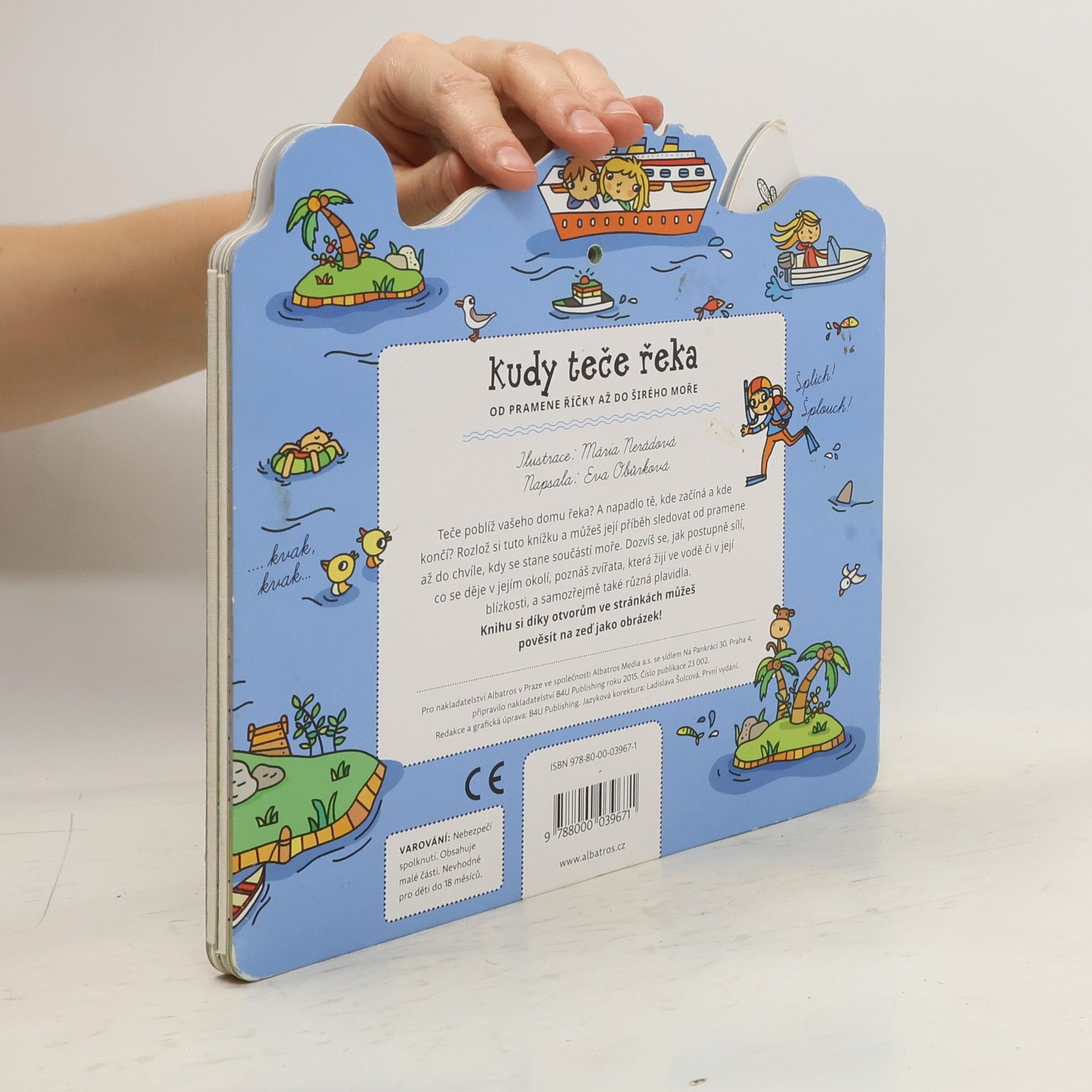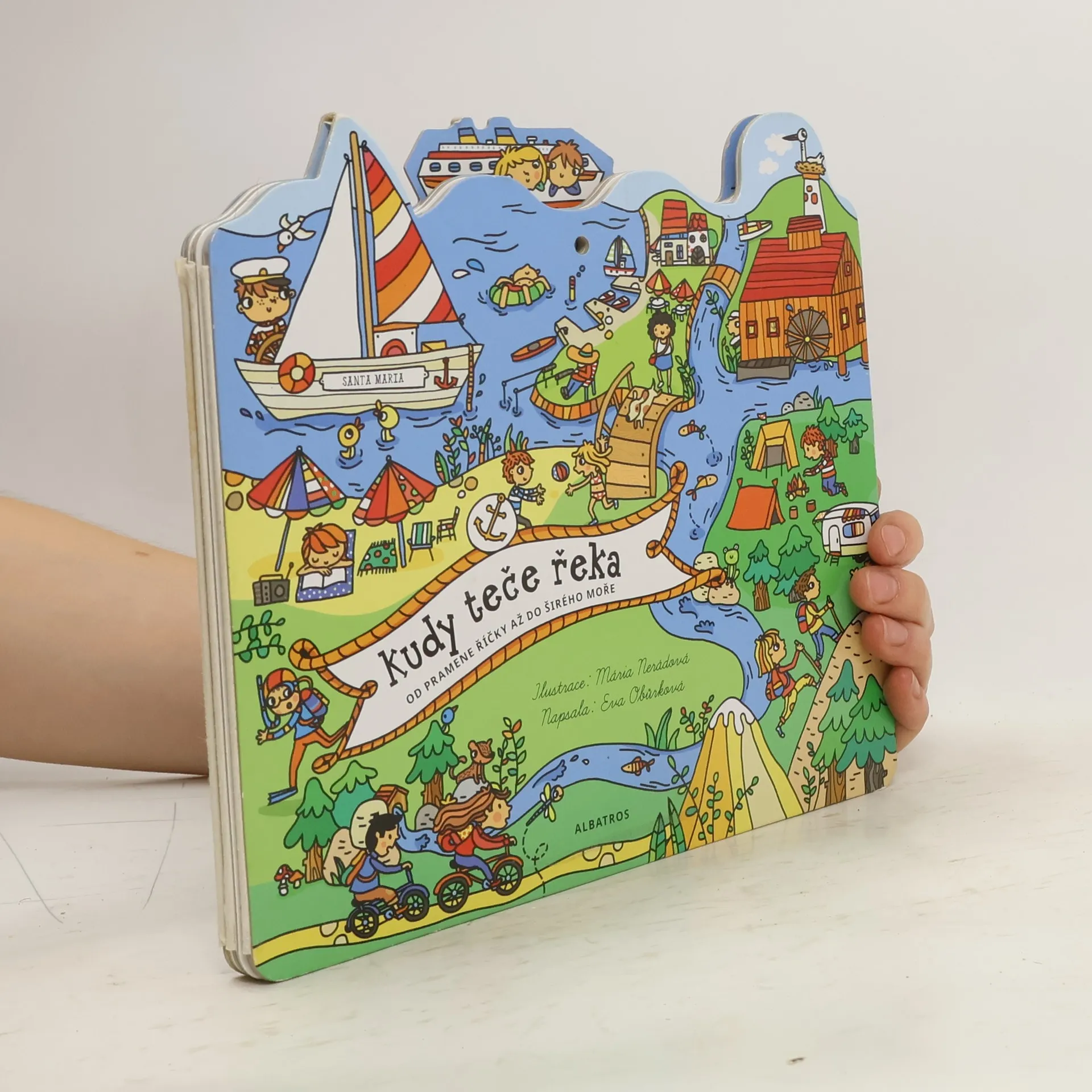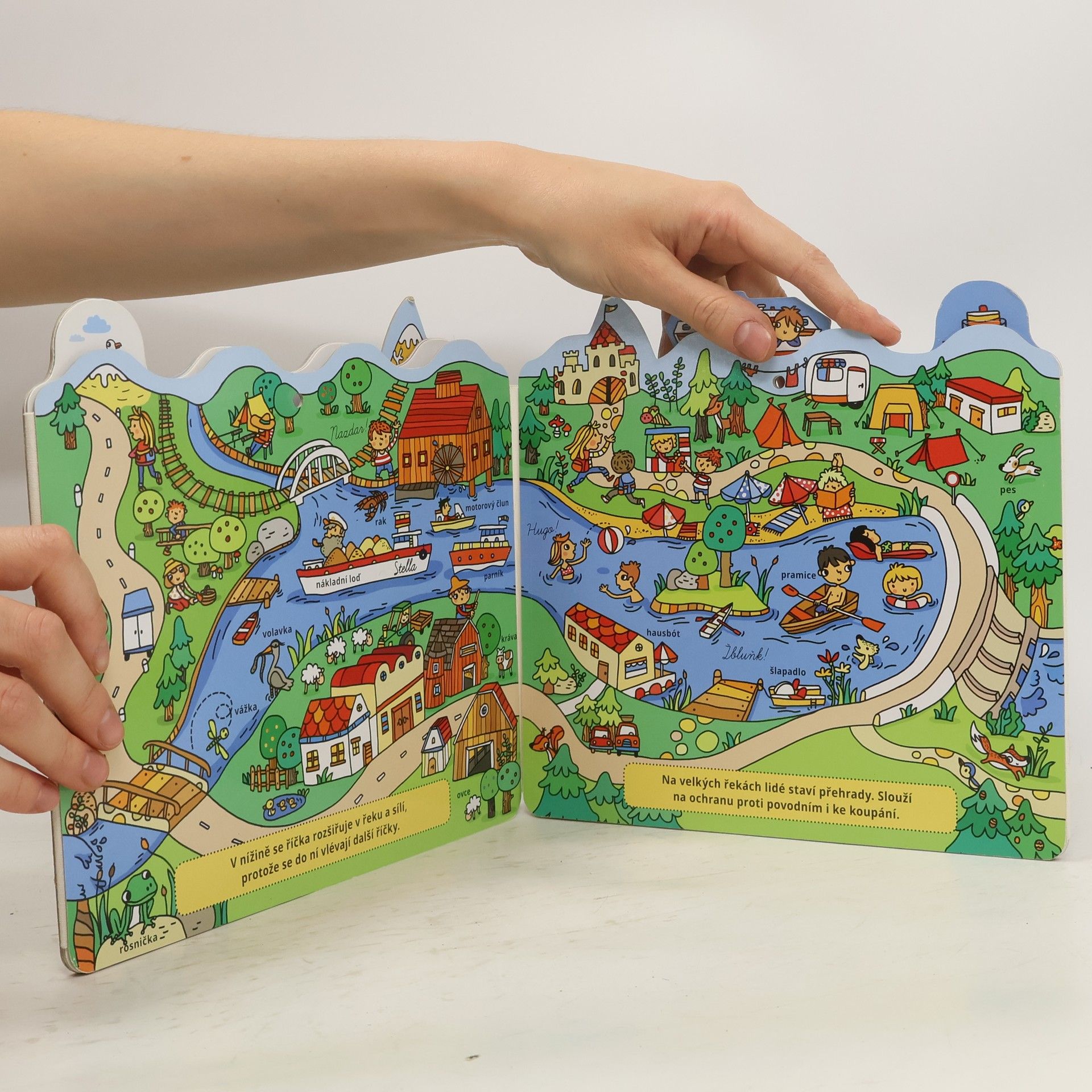 Teče poblíž vašeho domu řeka? A napadlo tě, kde začíná a kde končí? Rozlož si tuto knížku a můžeš její příběh sledovat od pramene až do chvíle, kdy se stane součástí moře. Dozvíš se, jak postupně sílí, co se děje v jejím okolí, poznáš zví- řata, která žijí ve vodě či v její blízkosti, a samozřejmě také různá plavidla. Knihu si díky otvorům ve stránkách můžeš pověsit na zeď jako obrázek!