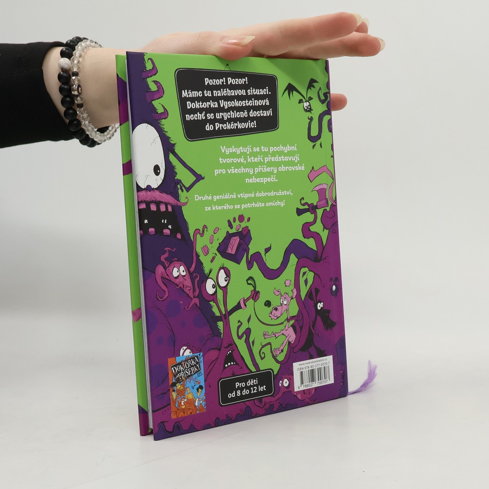 Pozor! Máme tu naléhavou situaci. Doktorka Vysokosteinová nechť se urychleně dostaví do Příkrčic! Vyskytují se tu Pochybní (potažmo problematičtí) Tvorové, kteří představují pro všechny příšery obrovské nebezpečí. Mají veliké oči, malé nosy a pištivě vysoké hlasy. Barvy jejich hebkých kožíšků jsou naprosto nepřirozené a způsobují roztečení očních bulv. Ozzy je obyčejný kluk, který souhrou náhod dostal letní brigádu v ordinaci příšeří doktorky. Nedokáže ale pochopit, proč jsou z těchto tvorů všichni tak vyděšení. Spolu s doktorkou se tedy vydává do Příkrčic, aby celé věci přišel na kloub a pomohl nejen zachránit příšery, ale též zabránit inspektoru Štípalovi, aby provedl další hloupost. V rukou držíte druhou knihu z veselé série dobrodružství plných příšer, humoru i napětí. Autor John Kelly knihu rovněž opatřil geniálně vtipnými ilustracemi, a zaručeně se tak u ní potrháte smíchy ... možná i doslova.