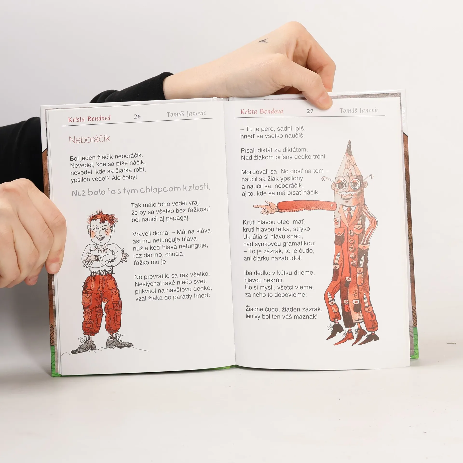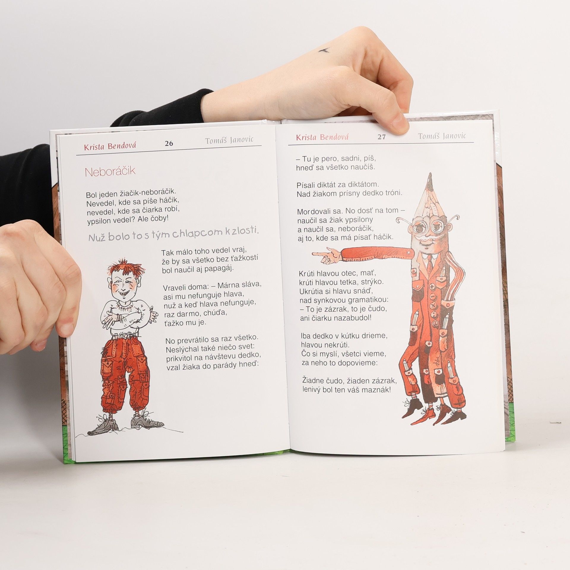 Keby mala rozum stonožka, ináč by si život zariadila... píše v básni o stonožke a nezbednom chlapcovi Krista Bendová. Kto sa nehrá - z kola von! - píše o deťoch Tomáš Janovic. Humorné školské básničky obidvoch autorov s blízkou poetikou. Žiacke zážitky rozosmievajú žiakov, rodičov i učiteľov, mladých i starších, lebo všetci práve sme, alebo sme boli raz v jednej triede, ktorá bola zaručene naj... Zmysel pre humor ako esenciu, z ktorej preciťujeme život ako čosi jedinečné a krásne, umocnil príťažlivý výtvarný prejav Svetozára Mydla.