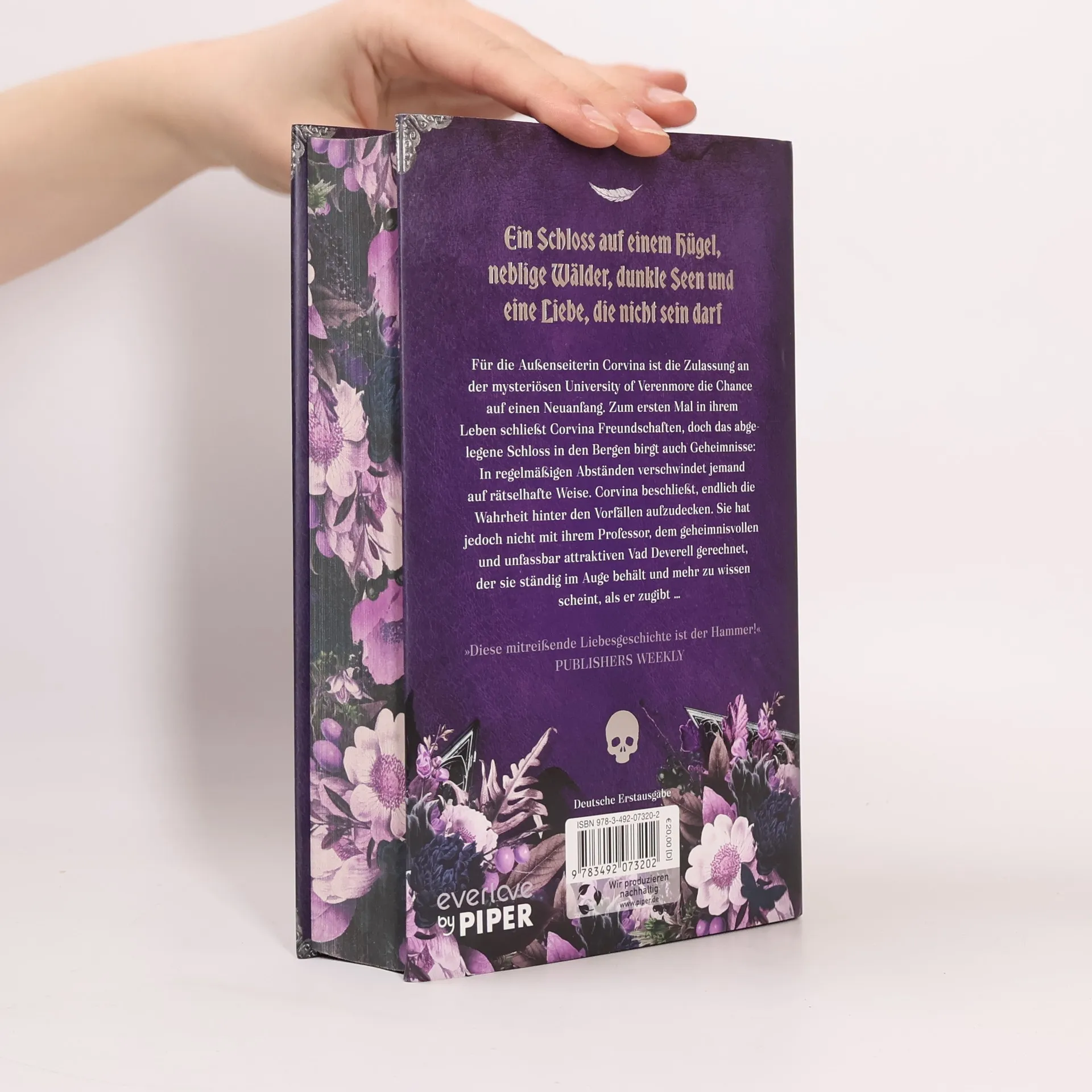 In "Ein Schloss auf einem Hügel" beginnt die Außenseiterin Corvina an der geheimnisvollen University of Verenmore ein neues Leben. Während sie Freundschaften schließt, entdeckt sie, dass das Schloss düstere Geheimnisse birgt, darunter mysteriöse Verschwindungen. Ihr Professor Vad Deverell scheint mehr zu wissen, als er preisgibt.