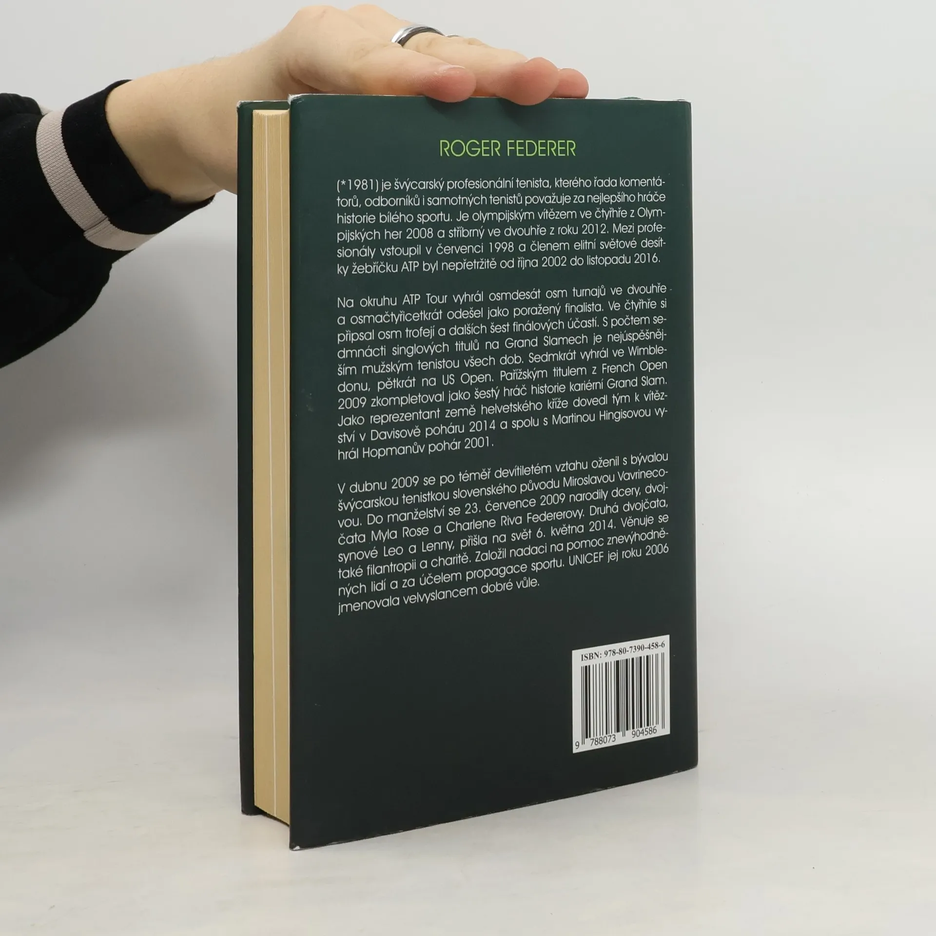Tato biografie sleduje vývoj tenisty Rogera Federera ad jeho prvních tenisových krůčků až po dnešní legendu a možná nejlepšího tenistu všech dob. Sleduje jeho sportovní kariéru i osobní život, manželství a narození dvojčat-holčiček – i druhých dvojčat-chlapců v roce 2014. Jeho velkolepý návrat na výsluní v roce 2013, triumf Švýcarska v Davis Cupu v roce 2014 nebo jeho slavnou prohru s Navakem Djokovičem ve finále Wimbledonu v roce 2015. Každý hráč vyhrál i prohrál spoustu zápasů, ovšem Federerův velkolepý návrat na výsluní po těžké nemoci je naprosto ojedinělý. Všechny kritiky umlčel ziskem prvního titulu z French Open, zlatou olympijskou medailí i tisícím vyhraným zápasem v profesionální kariéře – což se povedlo jen dvěma dalším hráčům. V této statistice zaostává i Novak Djokovič, dnešní suverénní jednička. Tato biografie přináší pohled na Federera jako hráče i muže, který má své pevné místo v historii tenisu i sportu obecně.