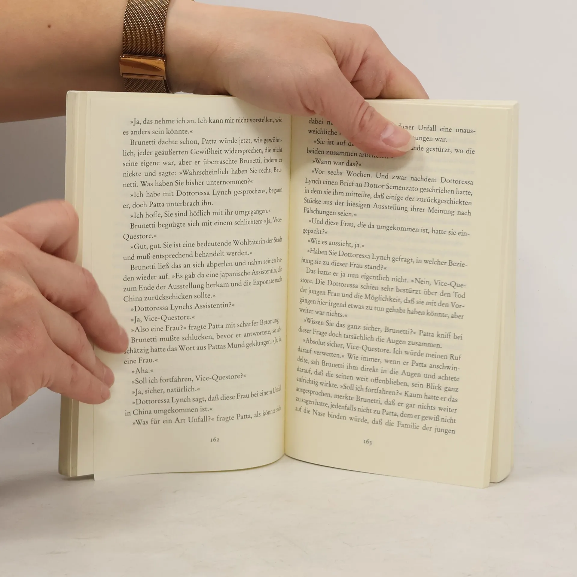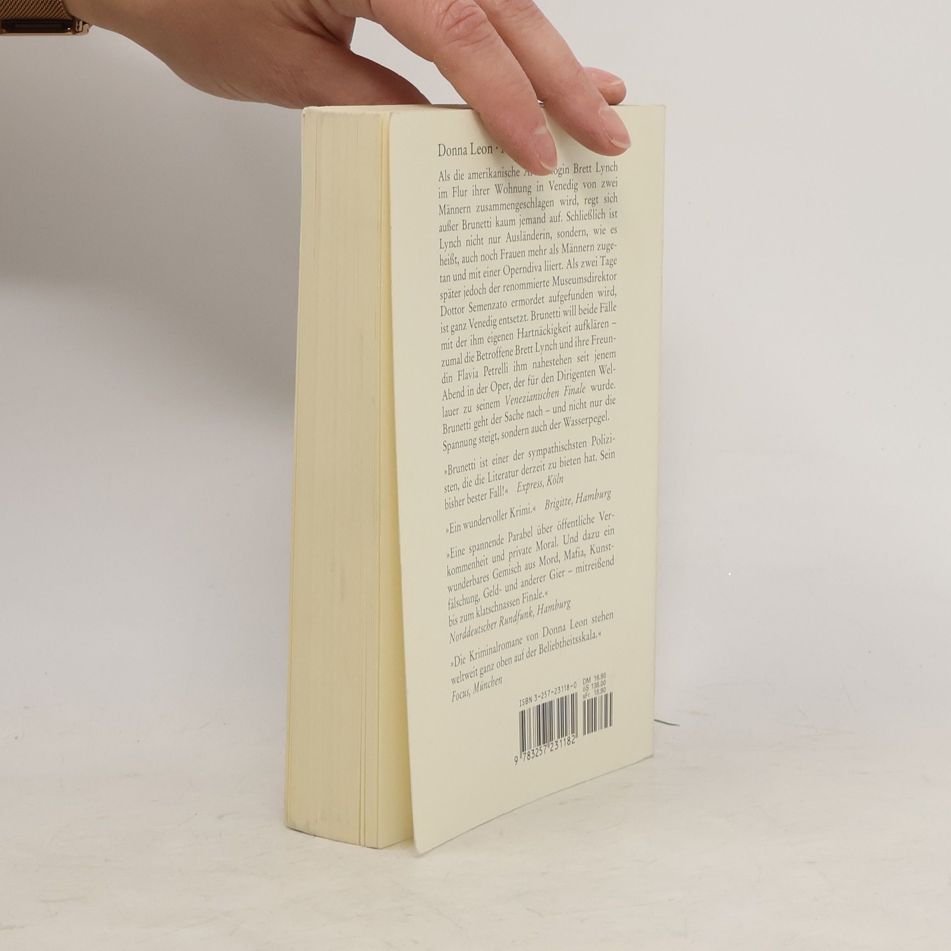 Als die amerikanische Archäologin Brett Lynch im Flur ihrer Wohnung n Venedig von zwei Männern zusammengeschlagen wird, regt sich außer Brunetti kaum jemand auf. Schließlich ist Lynch nicht nur Ausländerin, sondern wie es heißt, auch noch Frauen mehr als Männern zugetan und mit einer Operndiva liiert. Als zwei Tage später jedoch der renommierte Museumsdirektor Dottor Semenzato ermordet aufgefunden wird, ist ganz Venedig entsetzt. Brunetti will beide Fälle mit der ihm eigenen Hartnäckigkeit aufklären - zumal die Betroffene Brett Lynch und ihre Freundin Flavia Petrelli ihm nahestehen seit jenem Abend in der Oper, der für den Dirigenten Wellauer zu seinem VENEZIANISCHEN FINALE wurde. Brunetti geht der Sache nach - und nicht nur die Spannung steigt, sondern auch der Wasserpegel.