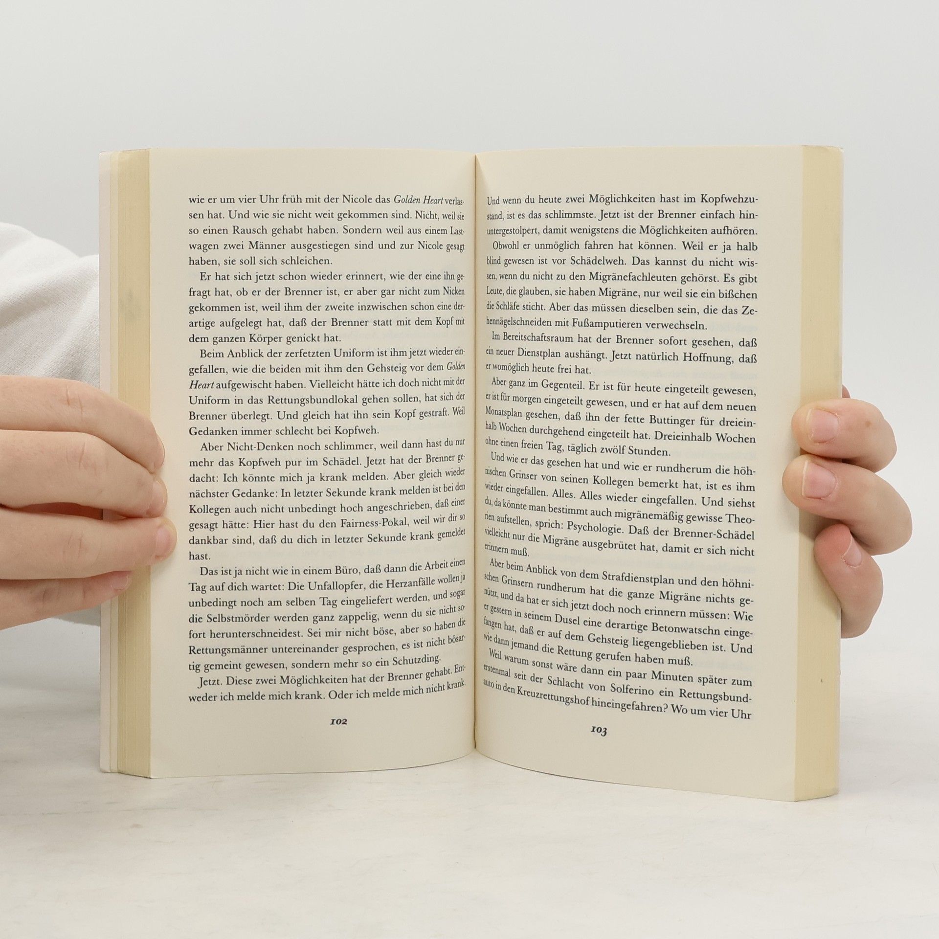Der Rettungsfahrer Hansi Munz kann es nicht fassen, wie gierig das Liebespaar vor dem Krankenhaus übereinander herfällt. Doch die Küssenden sinken nicht vor Leidenschaft zu Boden, sondern weil sie Opfer eines wahren Kunstschusses geworden sind. Den neuen Kollegen bei den Kreuzrettern, Brenner, läßt dieser Mord kalt - er hat den Privatdetektiv an den Nagel gehängt. Doch sein Chef ist froh, dass er einen ehemaligen Schnüffler in seinen Reihen hat. Im erbitterten Kampf um die Nummer eins im Wiener Rettungswesen will er den üblen Machenschaften der Konkurrenz ein für allemal einen Riegel vorschieben... Der Roman wurde mit dem Deutschen Krimipreis 1999 ausgezeichnet.