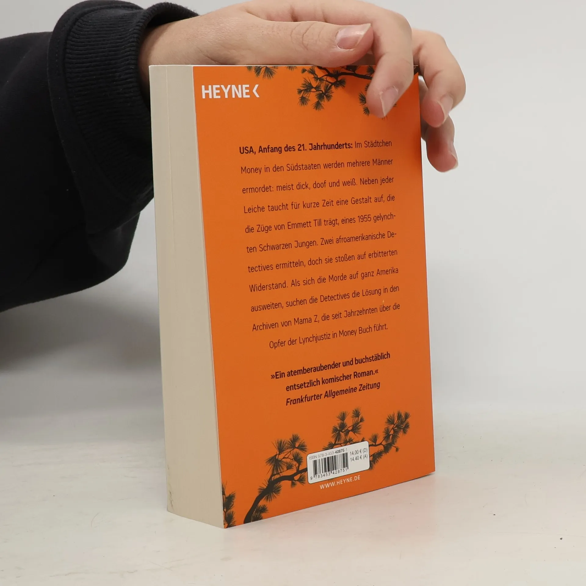 »Das ist ein großer Literaturspaß!« Denis Scheck USA, Anfang des 21. Jahrhunderts: Im Städtchen Money in den Südstaaten werden mehrere Männer ermordet: meist dick, doof und weiß. Neben jeder Leiche taucht ein Körper auf, der die Züge von Emmett Till trägt, eines 1955 gelynchten Schwarzen Jungen. Zwei afroamerikanische Detektive ermitteln, doch der Sheriff sowie eine Gruppe hartnäckiger Rednecks leisten erbitterten Widerstand. Als sich die Morde auf ganz Amerika ausweiten, suchen die Detektive des Rätsels Lösung in den Archiven von Mama Z, die seit Jahrzehnten über die Opfer der Lynchjustiz in Money Buch führt. Eine atemberaubende Mischung aus Parodie und Hardboiled-Thriller, wie es sie bislang in der amerikanischen Literatur nicht gegeben hat.