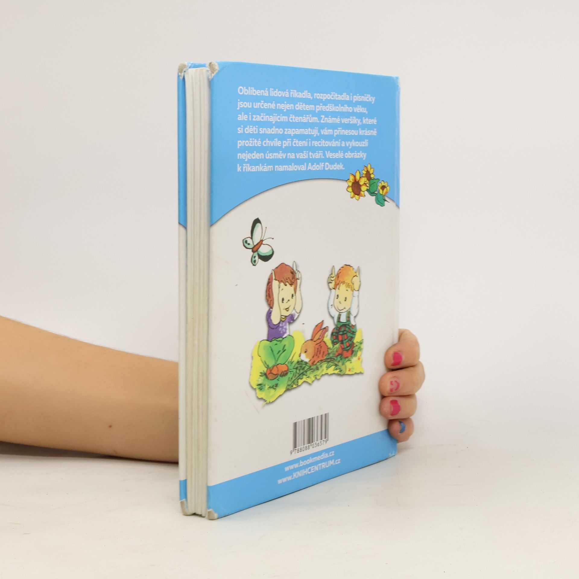 Oblíbená lidová říkadla, rozpočítadla i písničky jsou určené nejen dětem předškolního věku, ale i začínajícím čtenářům. Známé veršíky, které si děti snadno zapamatují, vám přinesou krásně prožité chvíle při čtení i recitování a vykouzlí nejeden úsměv na vaší tváři. Veselé obrázky k říkankám namaloval Adolf Dudek.