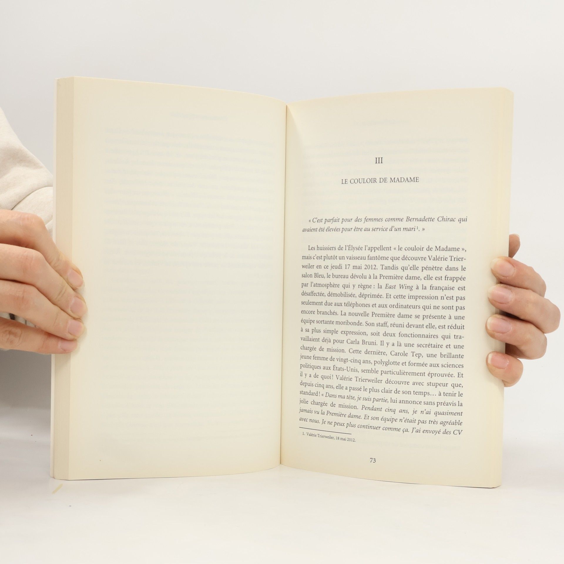 « Je connais les codes », se persuade l’ancienne journaliste depuis qu’elle a franchi le perron du palais de l’Élysée. Forte de sa culture politique, sûre de son coeur jusque dans ses élans impétueux, Valérie Trierweiler n’a pas écouté l’avertissement de Carla Bruni qui l’avait prévenue lors de la passation de pouvoirs – c’est un scoop de ce livre – des risques du « métier ». La déflagration surgit aussitôt, avec ce fameux tweet qui a suscité la colère de Ségolène Royal et la première tempête médiatique du quinquennat Hollande. Après des années de passion secrète qui l’ont obligée à un double jeu, tiraillée entre sa passion pour « François » et sa carte de presse, Valérie Trierweiler n’a pas mesuré que tout écart lui était désormais interdit. Ce premier portrait biographique consacré à la First Lady, depuis son enfance modeste jusqu’aux rencontres avec les grands de ce monde, prend tout son sens dans l’intrication des intrigues amoureuses et politiques au sommet de l’État. Grâce à une enquête riche en révélations sur son passé sentimental et professionnel, nourrie d’entretiens inédits avec Valérie Trierweiler ainsi que nombre de ses proches, les auteurs lèvent le voile sur l’esprit tourmenté de cette femme de feu. Où l’on devine que la personnalité de la compagne du Président n’a pas fini d’affoler acteurs et observateurs de la vie politique française.