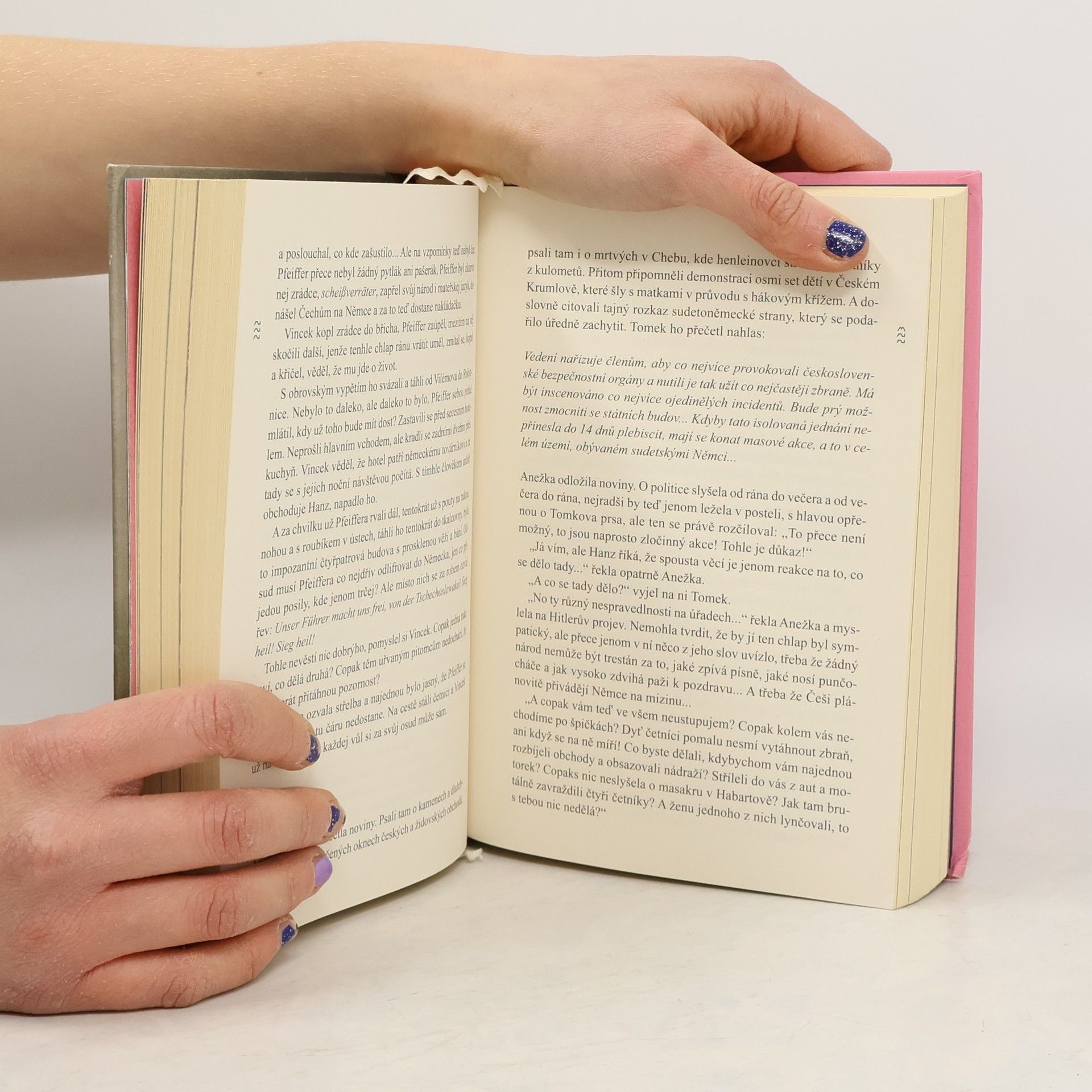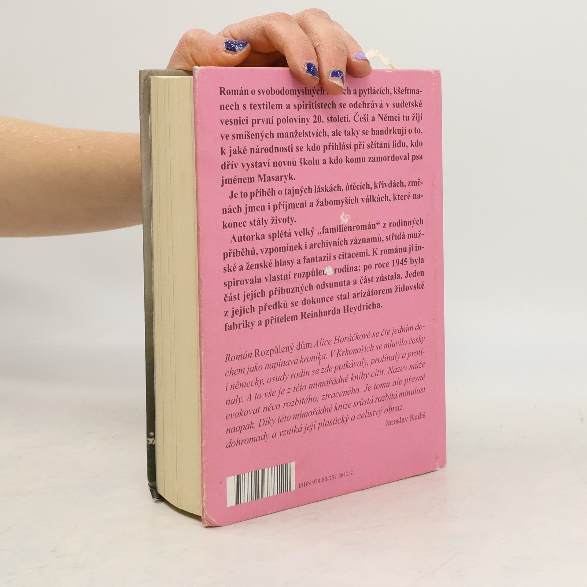 K románové kronice ze Sudet inspirovala autorku vlastní rozpůlená rodina: po roce 1945 byla část jejích příbuzných odsunuta a část zůstala. Horáčková se ve své čtvrté knize vrací do malebné česko-německé vesnice první poloviny 20. století a z odposlouchaných historek, vzpomínek i archivních záznamů splétá velký „familienroman“. Mezi její předky patřili pytláci a pašeráci, svobodomyslné ženy i úspěšní kšeftmani s textilem. Je to příběh o tajných láskách, změnách identit, útěcích, křivdách a žabomyších válkách, které nakonec stály životy. Češi a Němci tu žijí ve smíšených manželstvích, ale taky se handrkují o to, kdo komu zamordoval psa, kdo dřív vystaví novou školu a k jaké národnosti se kdo přihlásí ve sčítání lidu. Z jedné strany je přitom diriguje Jednota severočeská a z druhé Deutscher Kulturverband. Rozpůlený dům vznikal více než čtyři roky a autorka v něm střídá perspektivy, mužské a ženské hlasy, fantazii s citacemi. Při rešerších se dozvěděla víc, než by jí bylo milé: mimo jiné i to, že jeden z jejích předků se stal arizátorem židovské fabriky a přítelem Reinharda Heydricha.