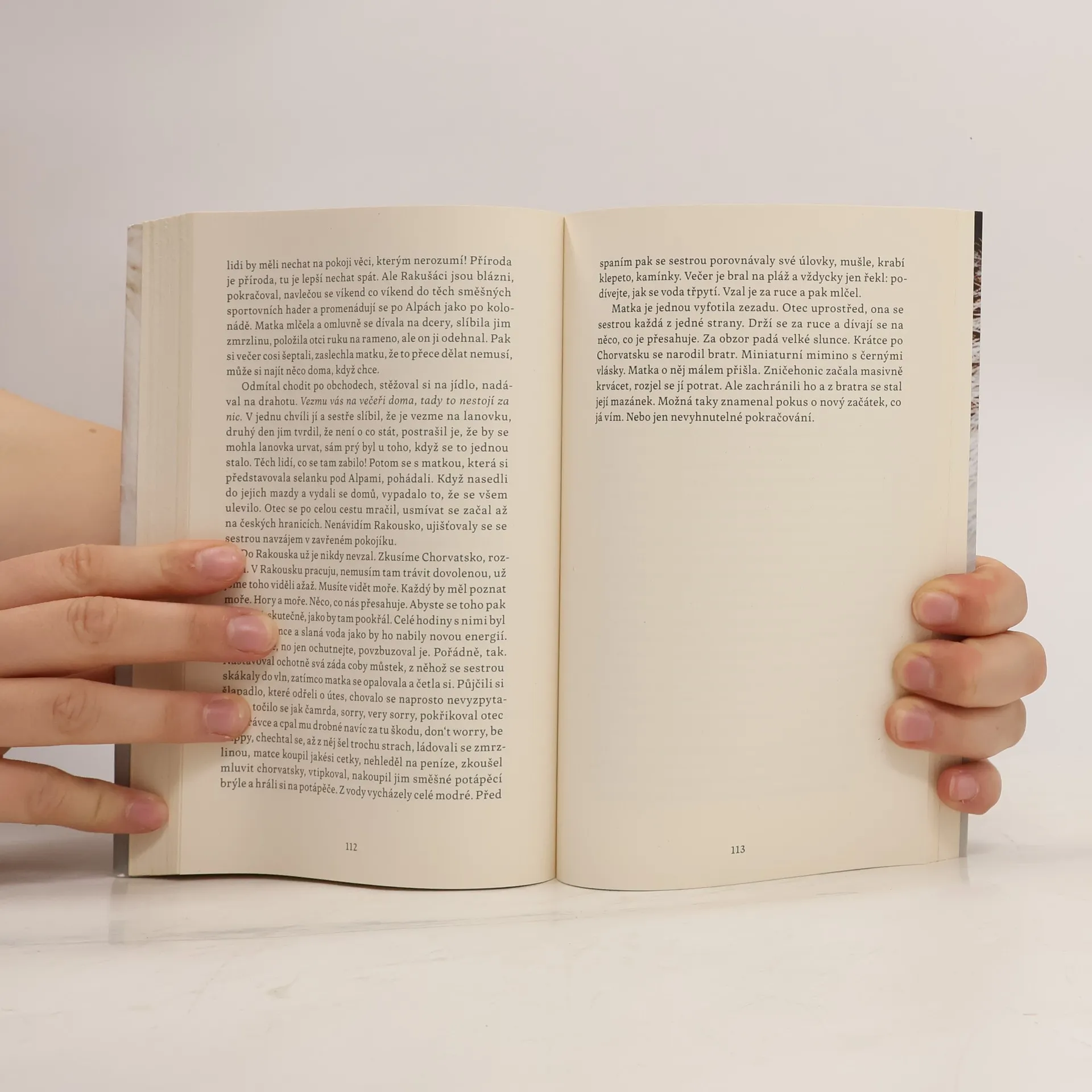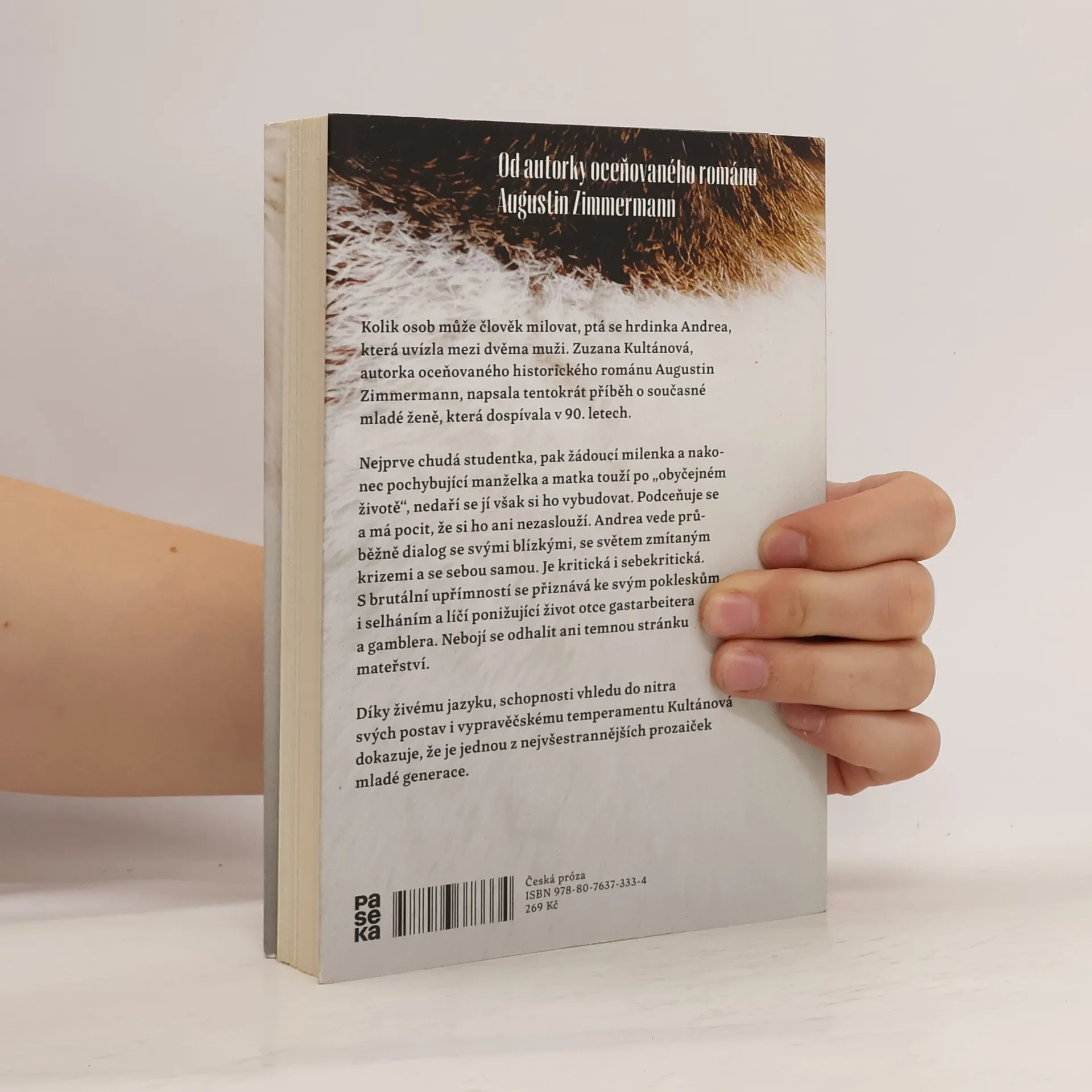 Kolik osob může člověk milovat, ptá se hrdinka Andrea, která uvízla mezi dvěma muži. Zuzana Kultánová, autorka oceňovaného historického románu Augustin Zimmermann, napsala tentokrát příběh o současné mladé ženě, která dospívala v 90. letech. Nejprve chudá studentka, pak žádoucí milenka, a nakonec pochybující manželka a matka touží po „obyčejném životě“, nedaří se jí však si ho vybudovat. Podceňuje se a má pocit, že si ho ani nezaslouží. Andrea vede průběžně dialog se svými blízkými, se světem zmítaným krizemi, i se sebou samou. Je kritická i sebekritická. S brutální upřímností se přiznává ke svým pokleskům i selháním a líčí ponižující život otce gastarbeitera a gamblera. Nebojí se také odhalit temnou stránku mateřství.