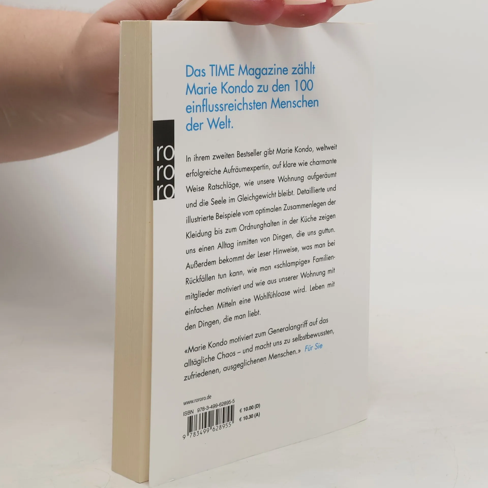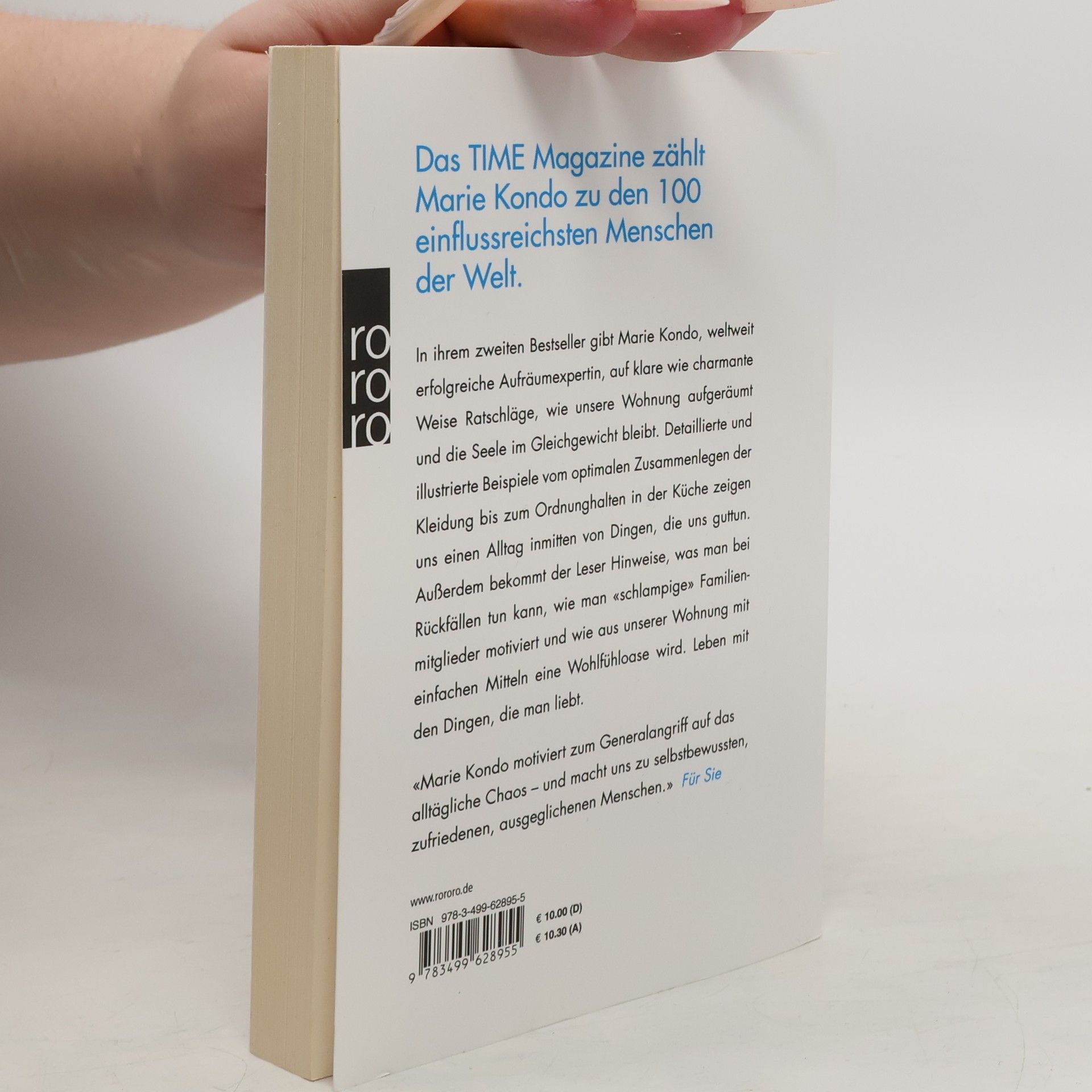 Das TIME Magazine zählt Marie Kondo zu den 100 einflussreichsten Menschen auf der Welt! In ihrem zweiten Bestseller gibt Marie Kondo, weltweit erfolgreiche Aufräumexpertin, auf klare wie charmante Weise Ratschläge, wie unsere Wohnung aufgeräumt und die Seele im Gleichgewicht bleibt. Detaillierte und illustrierte Beispiele vom optimalen Zusammenlegen der Kleidung bis zum Ordnunghalten in der Küche zeigen uns einen Alltag inmitten von Dingen, die uns guttun. Außerdem bekommt der Leser Hinweise, was man bei Rückfällen tun kann, wie man «schlampige» Familienmitglieder motiviert und wie aus unserer Wohnung mit einfachen Mitteln eine Wohlfühloase wird. Leben mit den Dingen, die man liebt. «Marie Kondo motiviert zum Generalangriff auf das alltägliche Chaos – und macht uns zu selbstbewussten, zufriedenen, ausgeglichenen Menschen.» Für Sie