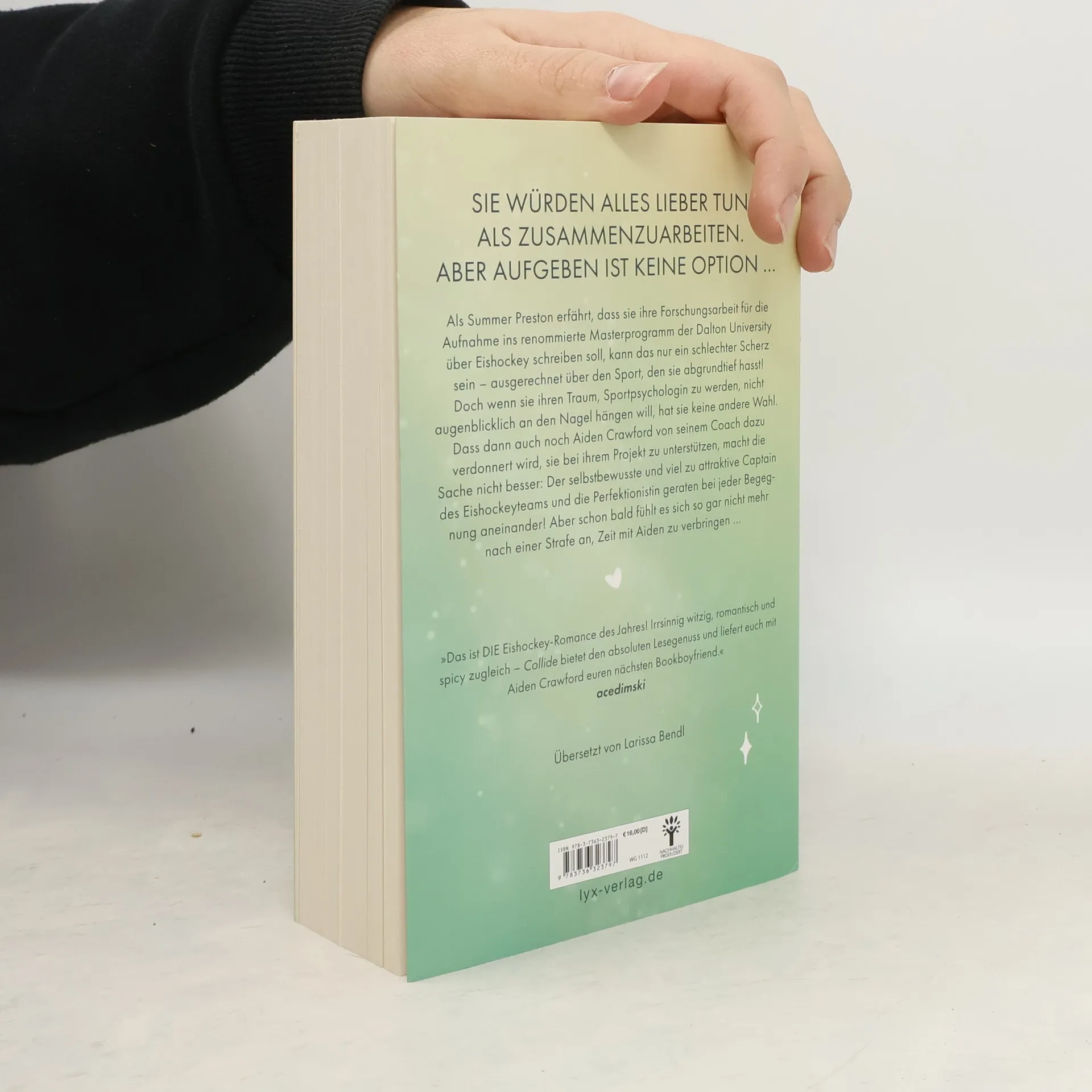 In "COLLIDE" muss Summer Preston eine Abschlussarbeit über Eishockey schreiben, obwohl sie den Sport hasst. Gemeinsam mit dem attraktiven Captain Aiden Crawford gerät sie in Konflikte. Beide sind ehrgeizig und geben nicht auf, was zu einer spannenden und leidenschaftlichen Geschichte führt. Band 1 der OFF-THE-ICE-Reihe.