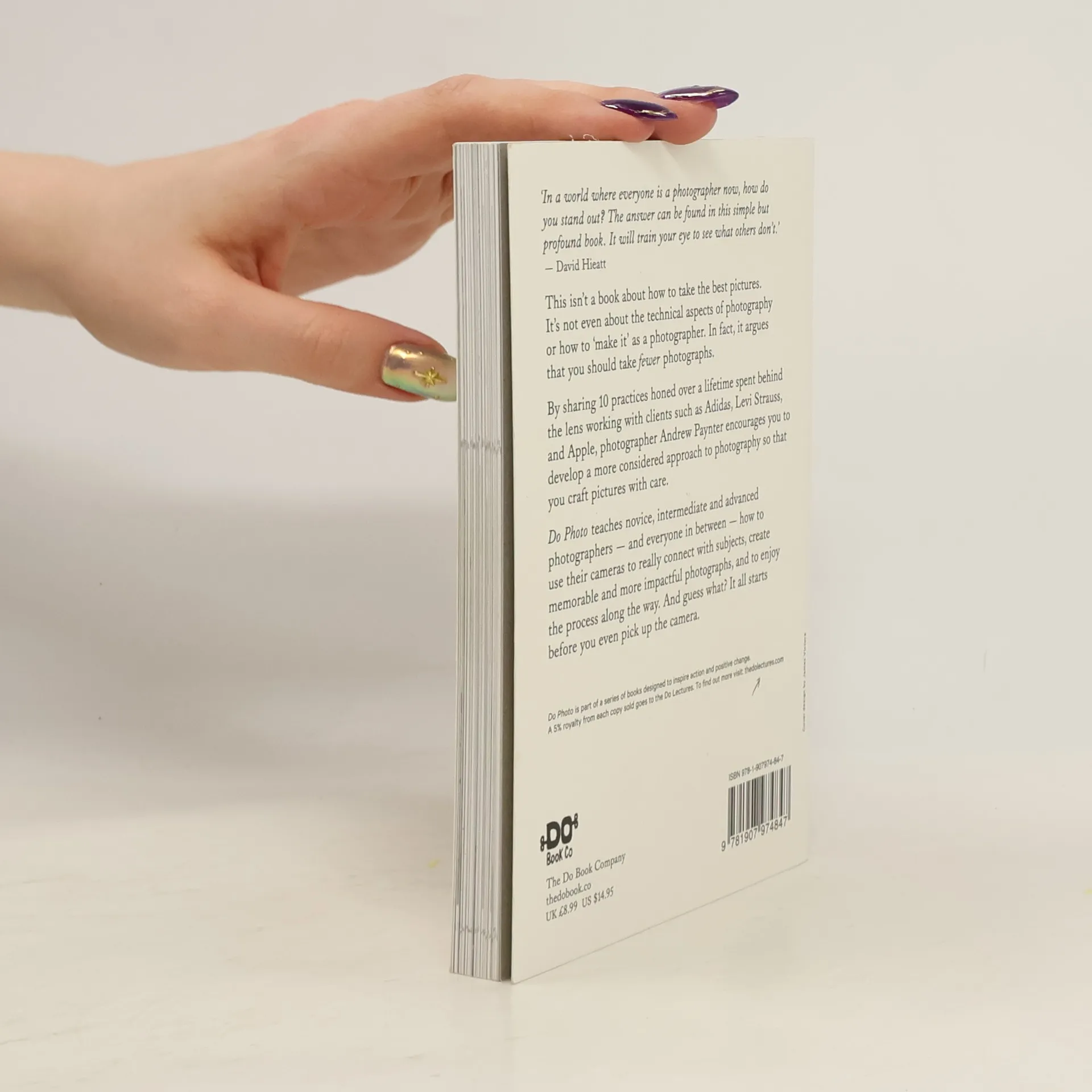 In a world where everyone is a photographer now, how do you stand out? The answer can be found in this simple but profound book. It will train your eye to see what others don't.' ― David Hieatt This isn’t a book about how to take the best pictures. It’s not even about the technical aspects of photography or how to ‘make it’ as a photographer. In fact, it argues that you should take fewer photographs. By sharing 10 practices honed over a lifetime spent behind the lens working with clients such as Adidas, Levi Strauss, and Apple, photographer Andrew Paynter encourages you to develop a more considered approach to photography so that you craft pictures with care. Do Photo teaches novice, intermediate and advanced photographers ― and everyone in between ― how to use their cameras to really connect with subjects, create memorable and more impactful photographs, and to enjoy the process along the way. And guess what? It all starts before you even pick up the camera.