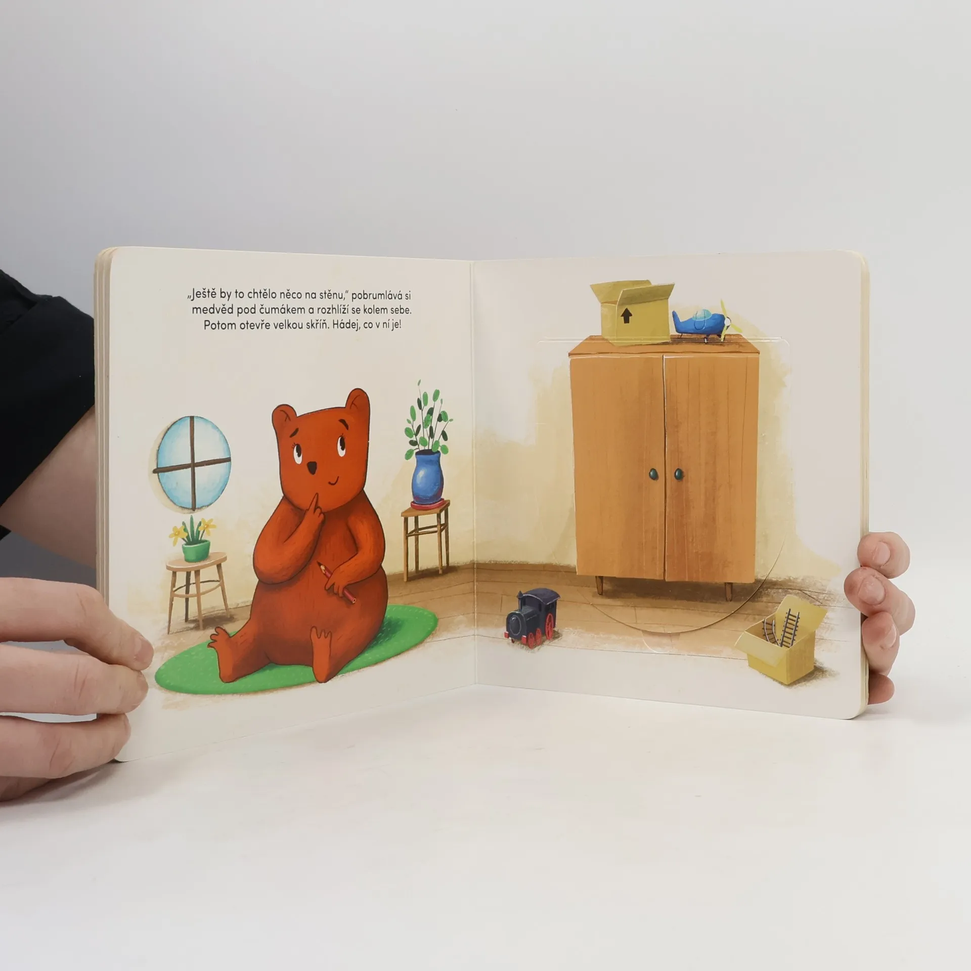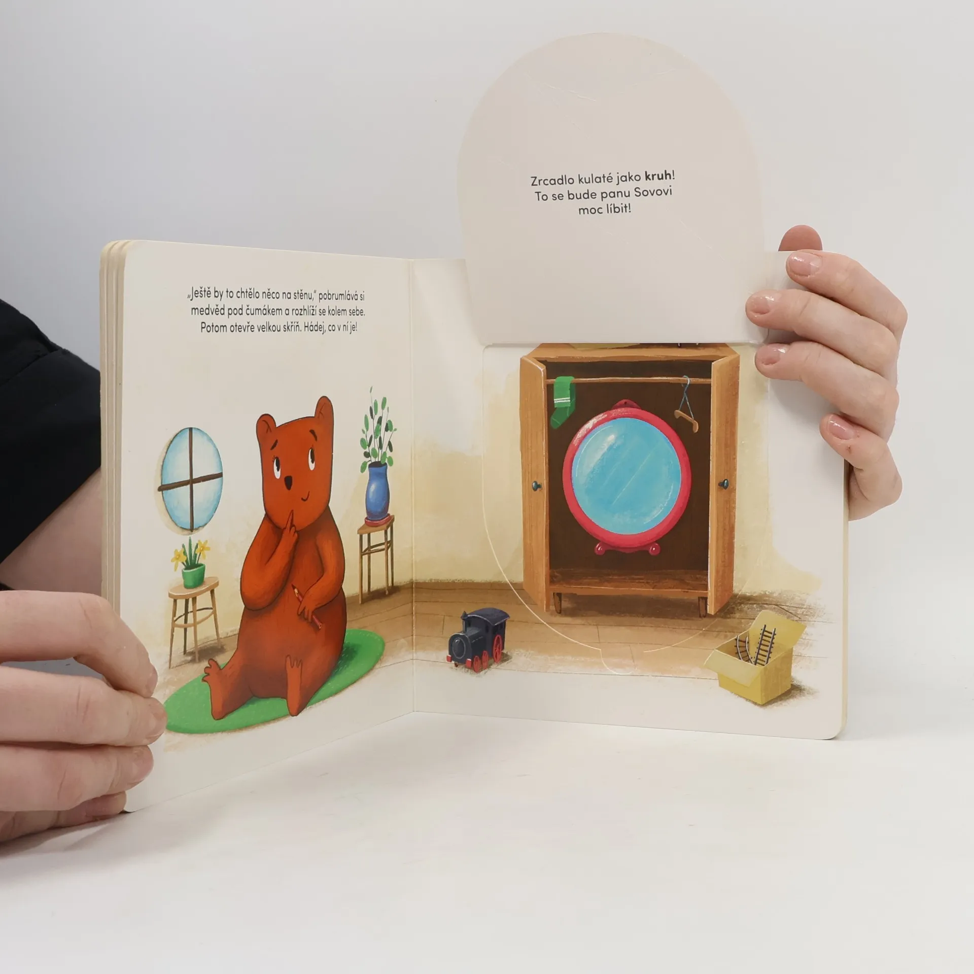 Pan Sova je smutný. Má plné bříško a teplý pelíšek, ale nemá čím vyzdobit svůj dům. Naštěstí je tu medvěd Béďa, který svému příteli rád pomůže. Poznávej s nimi tvary, nakoukni pod okénka a prohlédni si obrázky plné vtipných detailů!