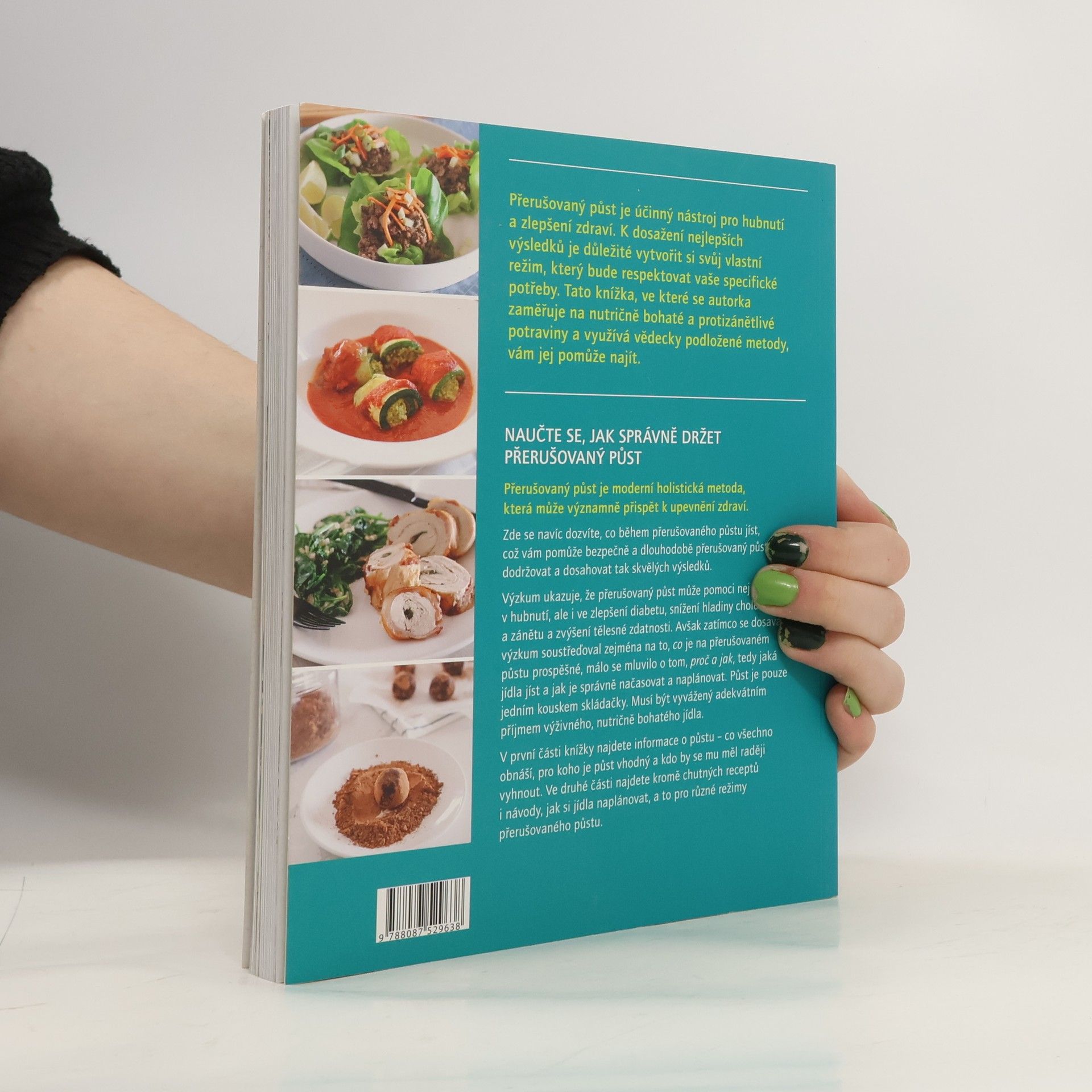 Přerušovaný půst je moderní holistická metoda, která může významně přispět k upevnění zdraví. Zde se navíc dozvíte, co během přerušovaného půstu jíst, což vám pomůže bezpečně a dlouhodobě přerušovaný půst dodržovat a dosahovat tak skvělých výsledků. Výzkum ukazuje, že přerušovaný půst může pomoci nejenom v hubnutí, ale i ve zlepšení diabetu, snížení hladiny cholesterolu a zánětu a zvýšení tělesné zdatnosti. Avšak zatímco se dosavadní výzkum soustřeďoval zejména na to, co je na přerušovaném půstu prospěšné, málo se mluvilo o tom, proč a jak, tedy jaká jídla jíst a jak je správně načasovat a naplánovat. Půst je pouze jedním kouskem skládačky. Musí být vyvážený adekvátním příjmem výživného, nutričně bohatého jídla. V první části knížky najdete informace o půstu – co všechno obnáší, pro koho je půst vhodný a kdo by se mu měl raději vyhnout. Ve druhé části najdete kromě chutných receptů i návody, jak si jídla naplánovat, a to pro různé režimy přerušovaného půstu.