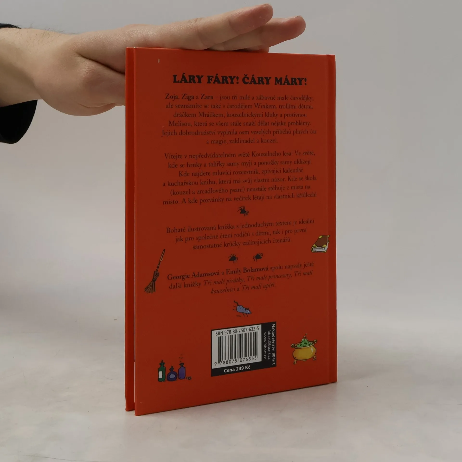 Vítejte v nepředvídatelném světě Kouzelného lesa! Ve světě, kde se hrnky a talířky samy myjí a ponožky samy uklízejí. Kde najdete mluvící rozcestník, zpívající kalendář a kuchařskou knihu, která má svůj vlastní názor. Kde se škola (kouzel a zrcadlového psaní) neustále stěhuje z místa na místo. A kde pozvánky na večírek létají na vlastních křídlech! Seznámíte se se Zojou, Zigou a Zarou, třemi milými a zábavnými malými čarodějkami – a také s čarodějem Winkem, trollími dětmi, dráčkem Mráčkem, kouzelnickými chlapci a protivnou Melisou, která se všem stále snaží dělat nějaké problémy. Jejich dobrodružství vyplnila osm veselých příběhů plných čar a magie, zaklínadel a kouzel. Připravili jsme pro Vás dvě nové knížky Tři malí upíři a Tři malí kouzelníci a tři reedice velmi oblíbených knížek: Tři malé princezny, Tři malé pirátky a Tři malé čarodějky v novém formátu, které vyjdou během podzimu 2016. Bohatě ilustrované knížky s jednoduchým textem jsou ideální jak pro společné čtení rodičů s dětmi, tak i pro první samostatné krůčky začínajících čtenářů.