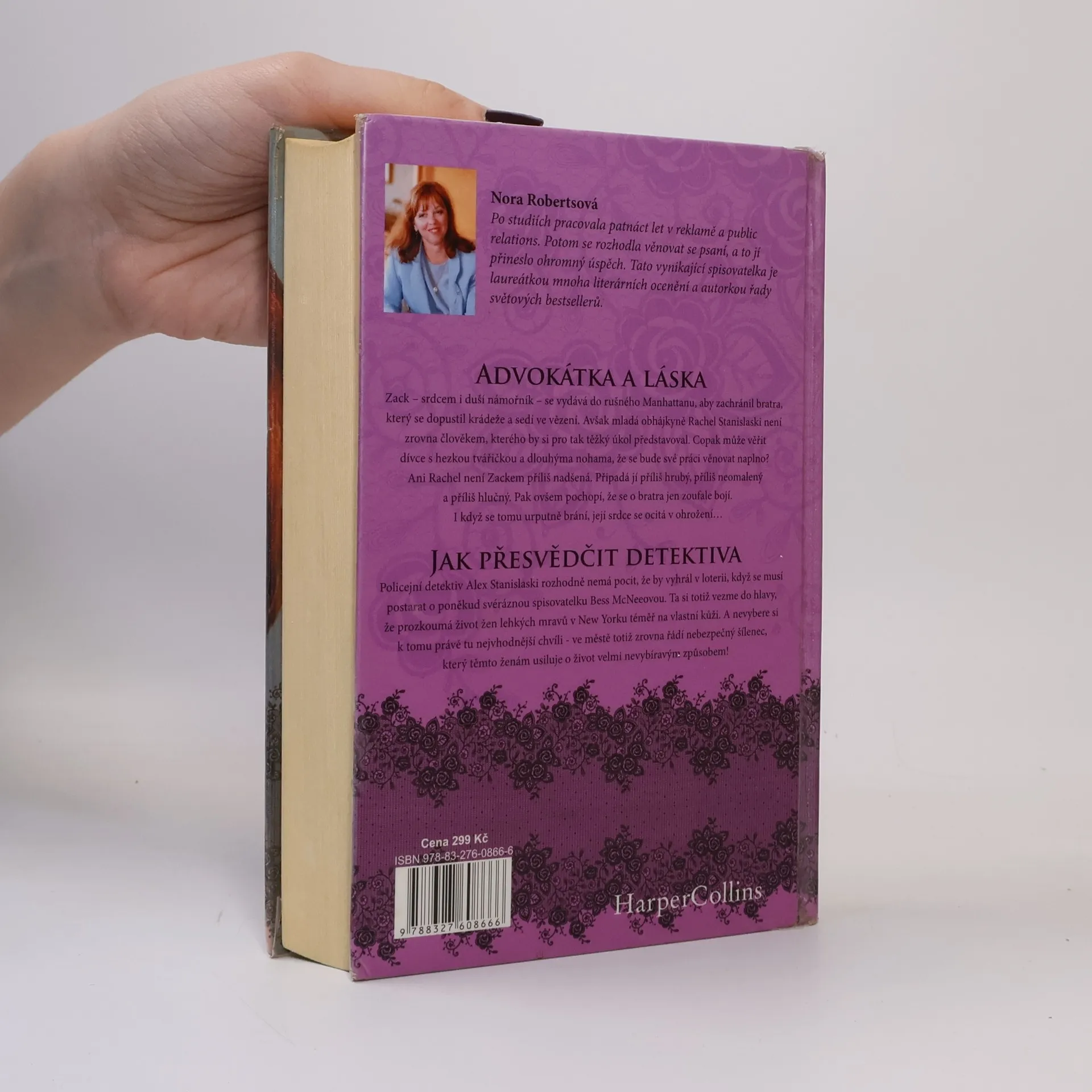 Obsahuje: Advokátka a láska -- Jak přesvědčit detektiva. Advokátka a láska: Zack - srdcem i duší námořník - se vydává do rušného Manhattanu, aby zachránil bratra, který se dopustil krádeže a sedí ve vězení. Avšak mladá obhájkyně Rachel Stanislaski není zrovna člověkem, kterého by si pro tak těžký úkol představoval. Copak může věřit dívce s hezkou tvářičkou a dlouhýma nohama, že se bude své práci věnovat naplno? Ani Rachel není Zackem příliš nadšená. Připadá jí příliš hrubý, příliš neomalený a příliš hlučný. Pak ovšem pochopí, že se o bratra jen zoufale bojí. I když se tomu urputně brání, její srdce se ocitá v ohrožení… Jak přesvědčit detektiva: Policejní detektiv Alex Stanislaski rozhodně nemá pocit, že by vyhrál v loterii, když se musí postarat o poněkud svéráznou spisovatelku Bess McNeeovou. Ta si totiž vezme do hlavy, že prozkoumá život žen lehkých mravů v New Yorku téměř na vlastní kůži. A nevybere si k tomu právě tu nejvhodnější chvíli - ve městě totiž zrovna řádí nebezpečný šílenec, který těmto ženám usiluje o život velmi nevybíravým způsobem!