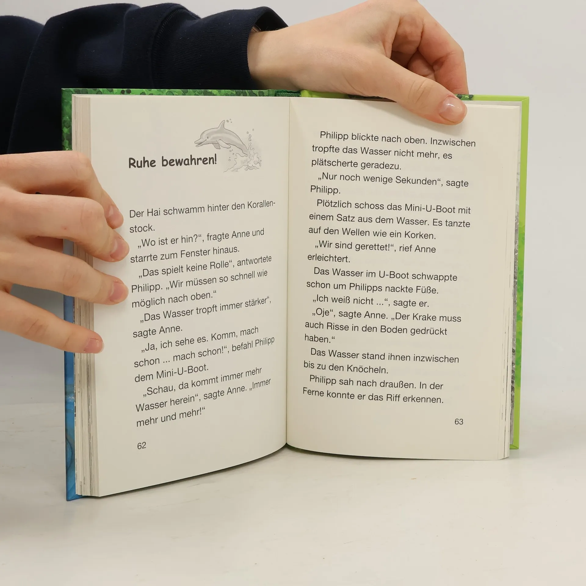 Das Buch ist bei deiner Buchhandlung vor Ort und bei vielen Online-Buchshops erhältlich! + Bücher, die Kinder gerne lesen wollen + Beliebte Themen: Abenteuer, Tiere und fremde Länder + Hochwertiges Hardcover + Mit vielen Illustrationen + Bereits über 10 Millionen verkaufte Bücher der Baumhaus-Reihe + Ausgewogenes Text-Bild-Verhältnis + Große Schrift + Kurze Kapitel + Anne und Philipp können es nicht glauben: Das magische Baumhaus hat sie in die Südsee verschlagen! Mit einem Mini-U-Boot machen sie sich in die Tiefen des Ozeans auf! Wogendes Seegras, regenbogenfarbene Korallen und jede Menge unbekannte Fische tummeln sich vor ihren Augen. Doch plötzlich geraten Philipp und Anne in große Gefahr. Ob ihnen die beiden Delfine helfen können? Die beliebte Kinderbuch-Reihe von Bestsellerautorin Mary Pope Osborne! Die Geschwister Anne und Philipp reisen mit dem magischen Baumhaus durch die Zeit. Sie erleben spannende Abenteuer, entdecken ferne Länder und lernen viele berühmte Persönlichkeiten kennen.