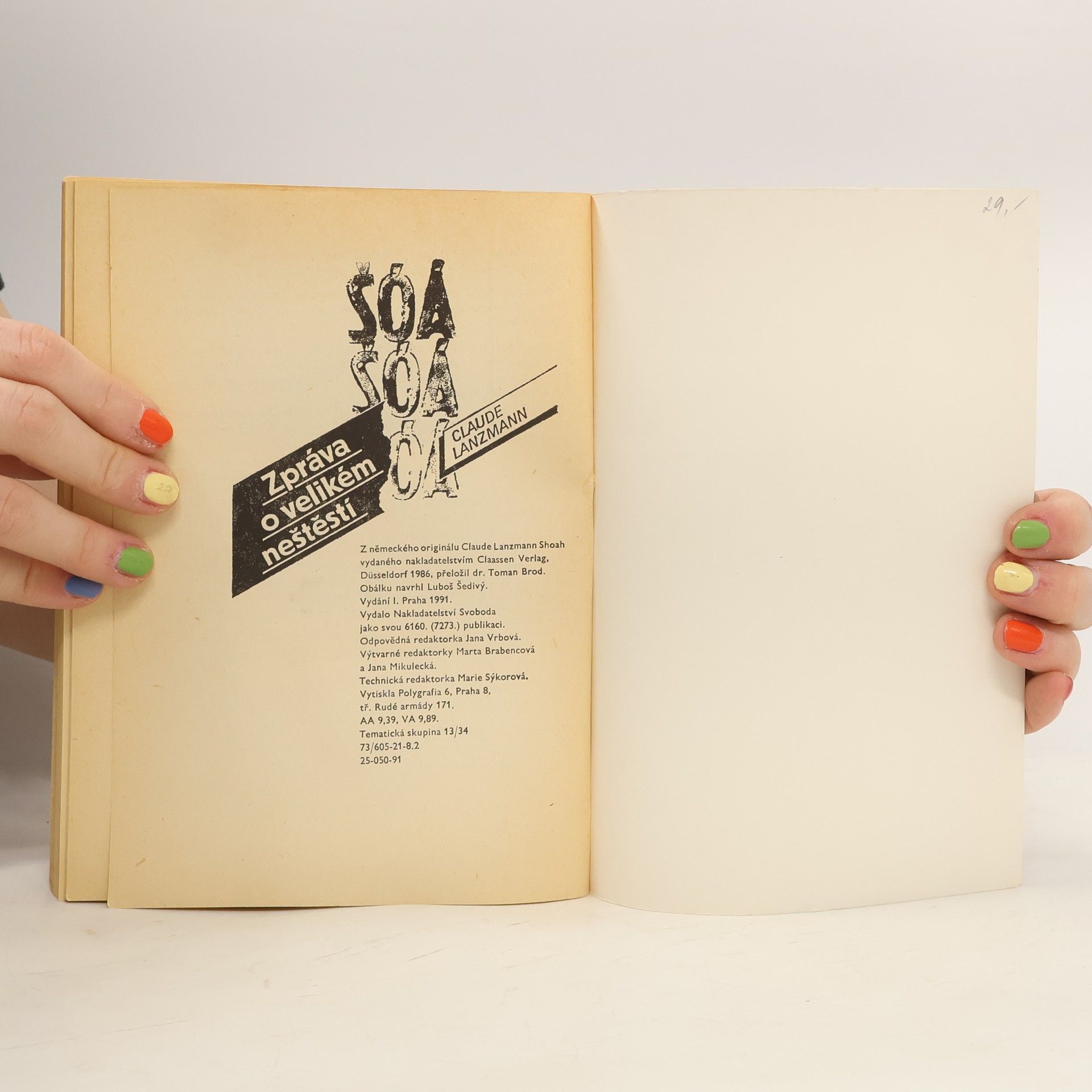 Knižní verze dokumentárního filmu, který na základě výpovědí očitých svědků vypovídá o hrůzách v ghettech a táborech smrti třetí říše. Autor po 12 let vyhledával očité svědky vyhlazovacích akcí za 2. světové války. Kniha s předmluvou Simone de Beauvoir je přepisem rozhovorů, které vedl autor ve svém dokumentárním filmu z roku 1985 Shoah. Spisovatel a režisér dokumentarista Claude Lanzmann na něm pracoval od roku 1974. Shoah představuje mimořádné dokumentární dílo zabývající se holocaustem. Více jak devítihodinový snímek neobsahuje žádné dobové záběry z války a skládá se výhradně z výpovědí očitých svědků holocaustu. Ti, kteří přežili masové vyvražďování, zde mají možnost zprostředkovat své zkušenosti a uchovat je pro budoucí generace, přičemž jejich vzpomínky mnohdy ožívají při návštěvě místa činu (např. tábor Treblinka), často to však není vůbec třeba. Lanzmannem zachycené výpovědi patří k základním a dnes už klasickým zdrojům pro poznaní největšího zločinu v evropských dějinách, jimž bylo nacistické vyhlazovaní Židů.