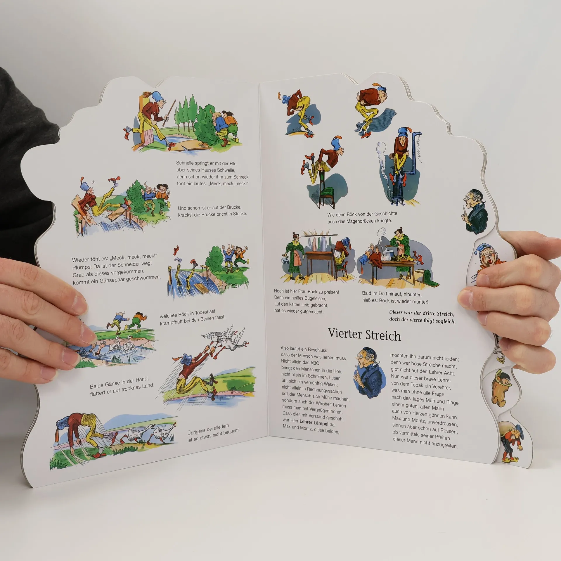 Das Buch ist bei deiner Buchhandlung vor Ort und bei vielen Online-Buchshops erhältlich! Mit seinen Bildergeschichten hat Wilhelm Busch die Ausdrucksform der heutigen Comics vorweggenommen. Seine Darstellungsweise beschränkt sich auf das Wesentliche und kommt ohne Umschweife zum Kern der Aussage. In der Vereinfachung, der Verkürzung des Handlungsinhalts und der karikaturistischen Überzeichnung bestimmter Wesens- und Charakterzüge seiner Mitmenschen liegt die große Meisterschaft dieses bedeutenden Zeichners. Der überragende Erfolg seiner Bildergeschichten und dabei insbesondere von „Max und Moritz„ ist aber dadurch begründet, dass sich der Leser mit den Helden der Handlung – im Falle von „Max und Moritz“ mit den beiden Lausbuben selbst – identifiziert. Die Schwächen und die Fehler der karikierten Figuren zeigen dabei immer wieder typisch-menschliches Versagen, das von Wilhelm Busch auf drastisch unbarmherzige Weise bloßgestellt wird. Diese wahrhaft „klassische" Bildergeschichte erscheint hier in einem detailgetreuen Nachdruck.