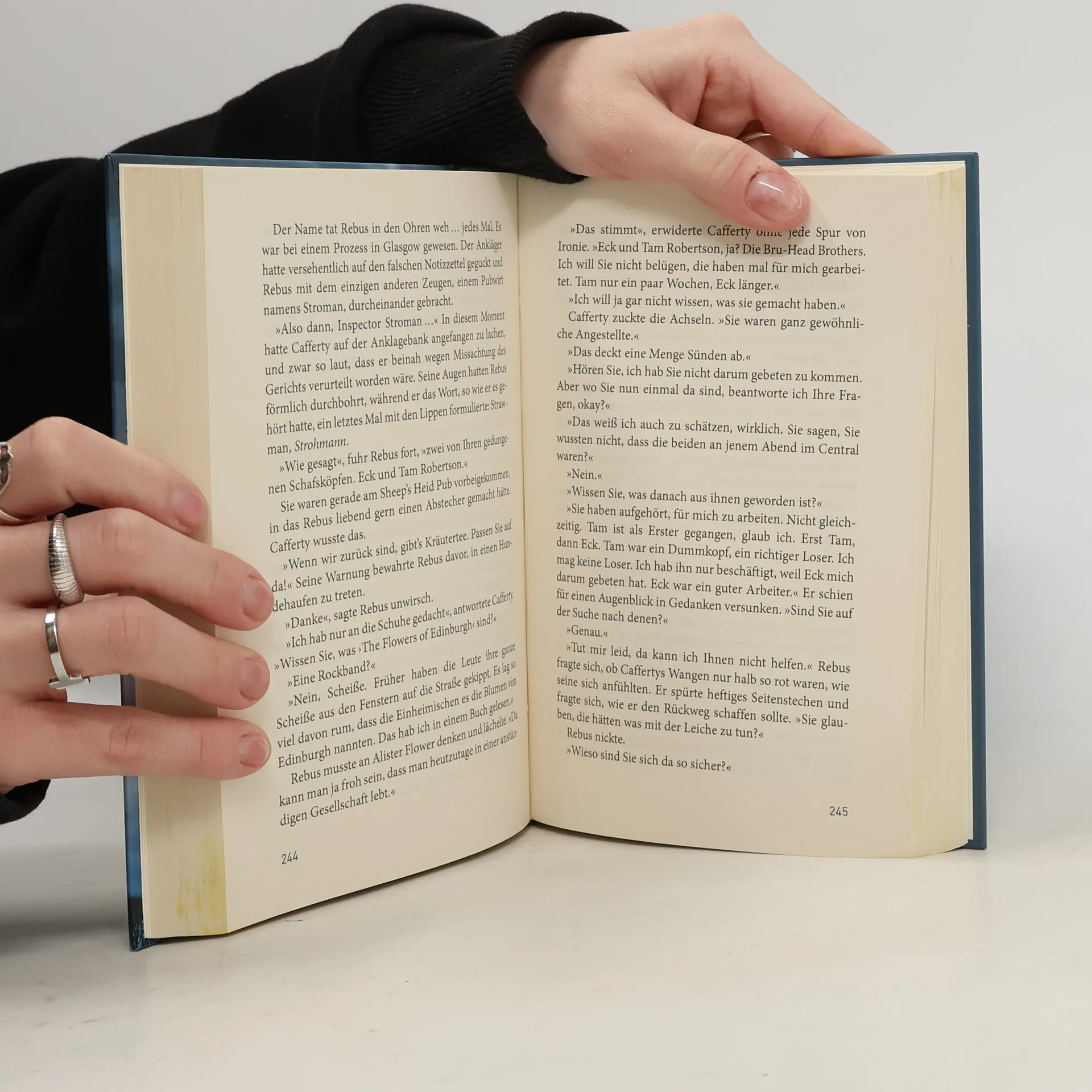 Fünf Jahre ist es her, dass das Central Hotel in einem gewaltigen Flammenmeer bis auf die Grundmauern niederbrannte. Die Katastrophe forderte mehrere Tote, viele Gäste wurden verletzt, doch die Ermittlungen verliefen schnell im Sande. Nun fallen Inspector Rebus Hinweise auf Brandstiftung in die Hände, die nie in den Akten auftauchten. Die Tat trägt die Handschrift von „Big Ger“ Cafferty. Aber der hat einflussreiche Freunde – nicht zuletzt bei der Edinburgher Polizei …