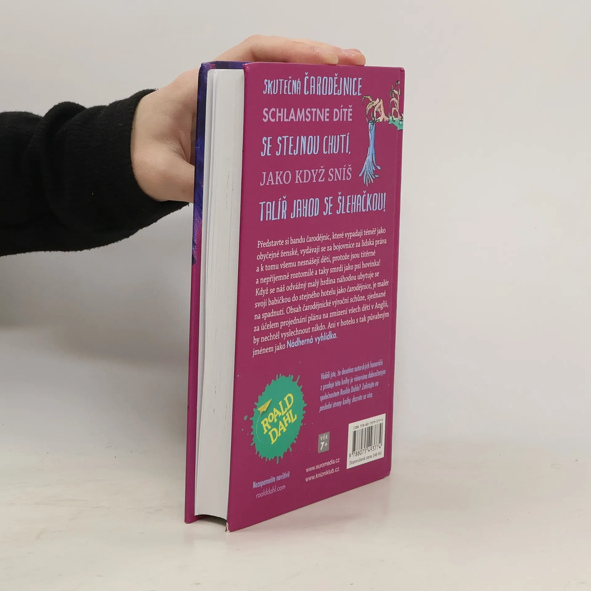 Skutečná čarodějnice schlamstne dítě se stejnou chutí, jako když sníš talíř jahod se šlehačkou! Představte si bandu čarodějnic, které vypadají téměř jako obyčejné ženské, vydávají se za bojovnice za lidská práva a k tomu ke všemu nesnášejí děti, protože jsou titěrné a nepříjemně roztomilé a taky smrdí jako psí hovínka! Když se náš odvážný malý hrdina náhodou ubytuje se svojí o nic víc sympatickou babičkou do stejného hotelu jako čarodějnice, je malér na spadnutí. Obsah čarodějnické výroční schůze, sjednané za účelem projednání plánu na zmizení všech dětí v Anglii, by nechtěl vyslechnout nikdo. Ani v hotelu s tak půvabným jménem jako Nádherná vyhlídka. Kniha je určena pro děti od 7 let.