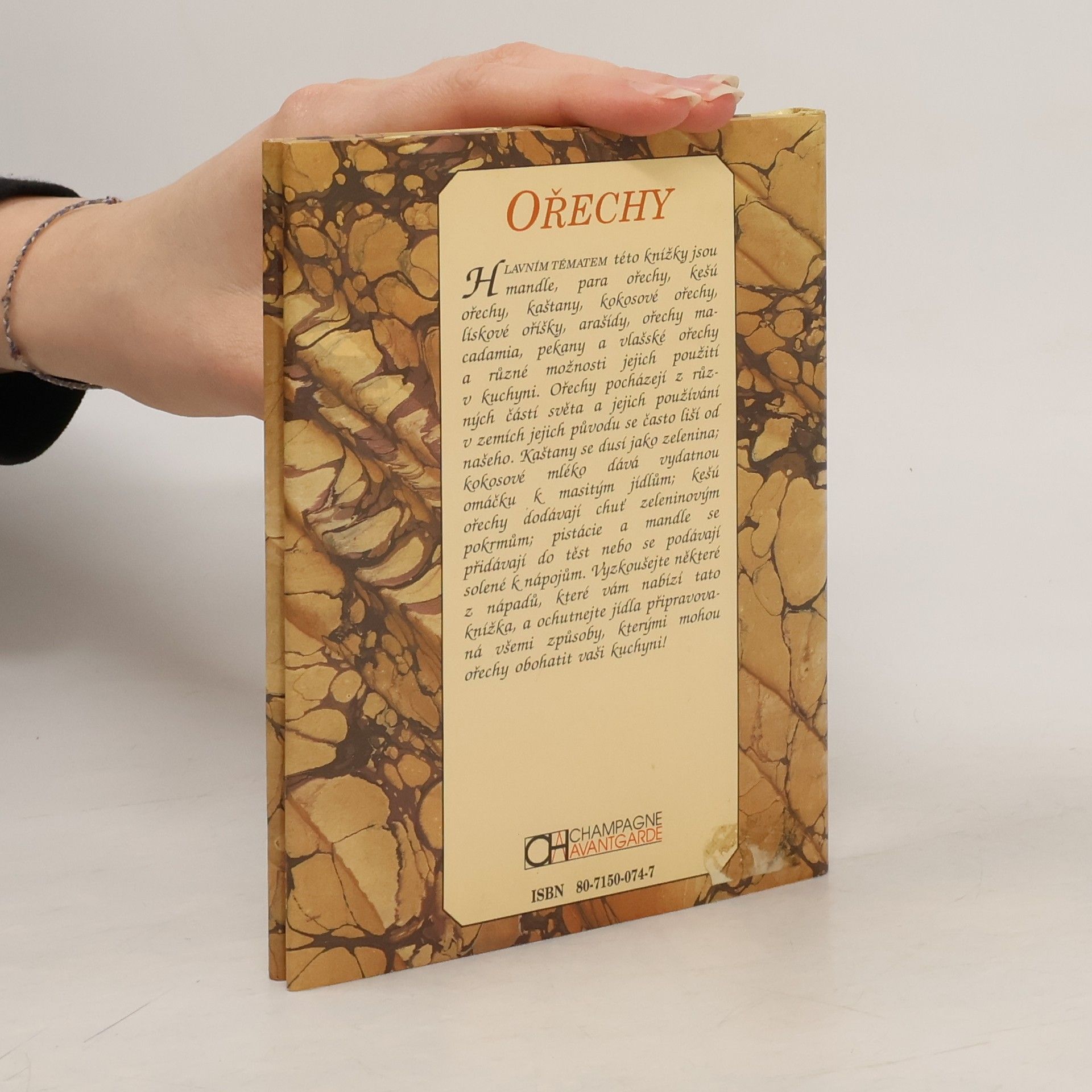 Knížka popisuje některé druhy ořechů, uvádí jejich charakteristiku a předpisy s jejich použitím.