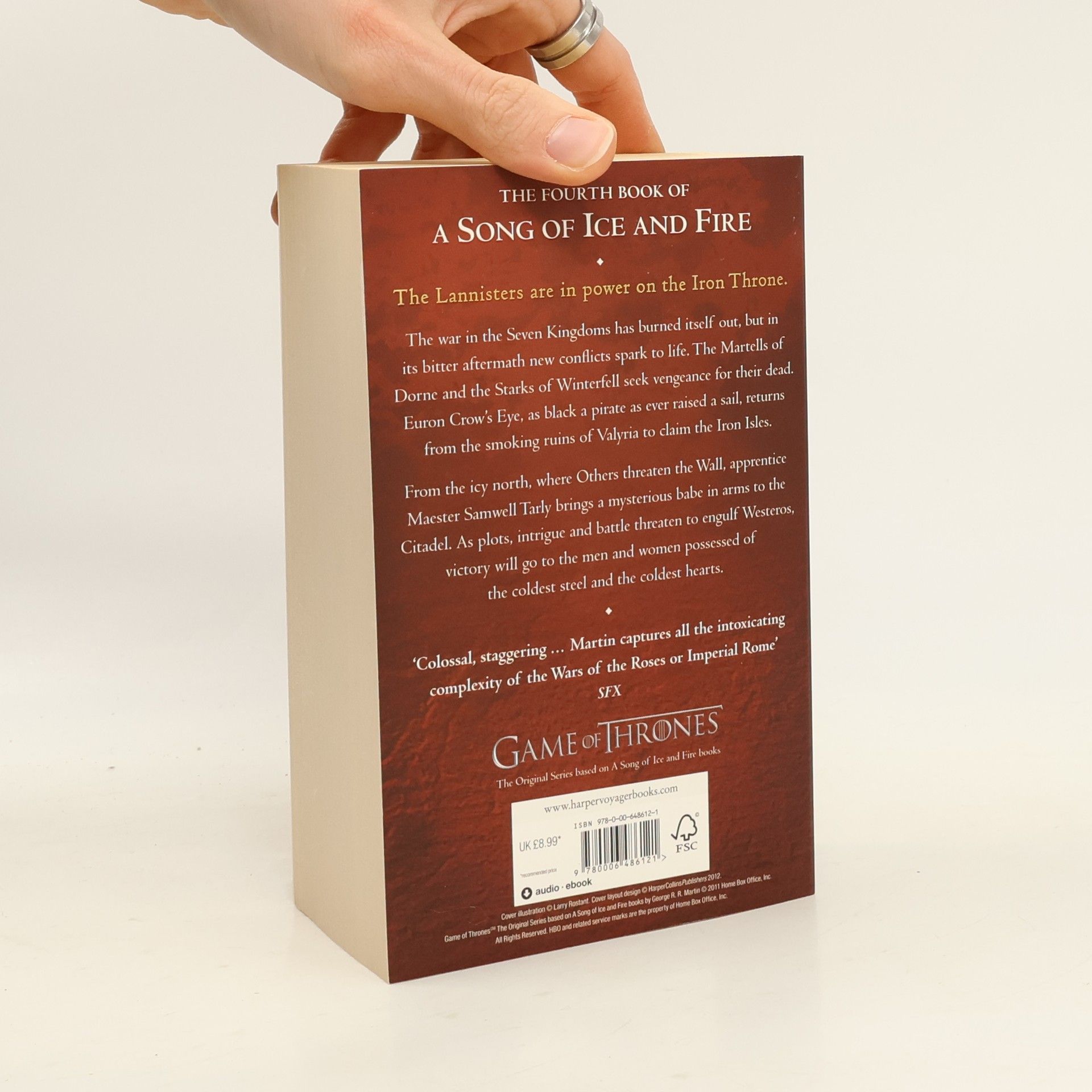 Bloodthirsty, treacherous and cunning, the Lannisters are in power on the Iron Throne in the name of the boy-king Tommen. But fear and deceit are in the air: their enemies are poised to strike. This work brings to life dark magic, complex political intrigue and horrific bloodshed.