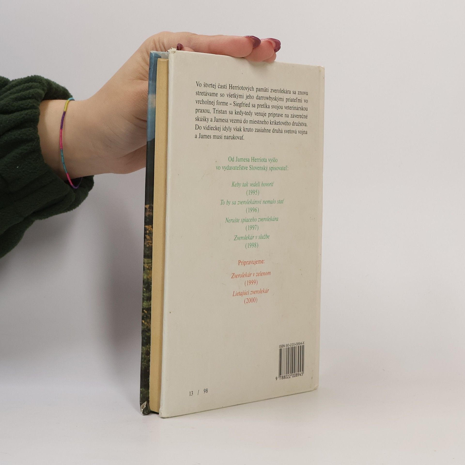 Vo štvrtej časti Herriotových pamätí zverolekára sa znovu stretávame so všetkými jeho darrowbyskými priateľmi vo vrcholnej forme- Siegfried sa pretĺka svojou veterinárskou praxou, Tristan sa kedy-tedy venuje príprave na záverečné skúšky a Jamesa vezmú do miestného kriketového družstva. Do vidieckej idyly však kruto zasiahne druhá svetová vojna a James musí narukovať.
