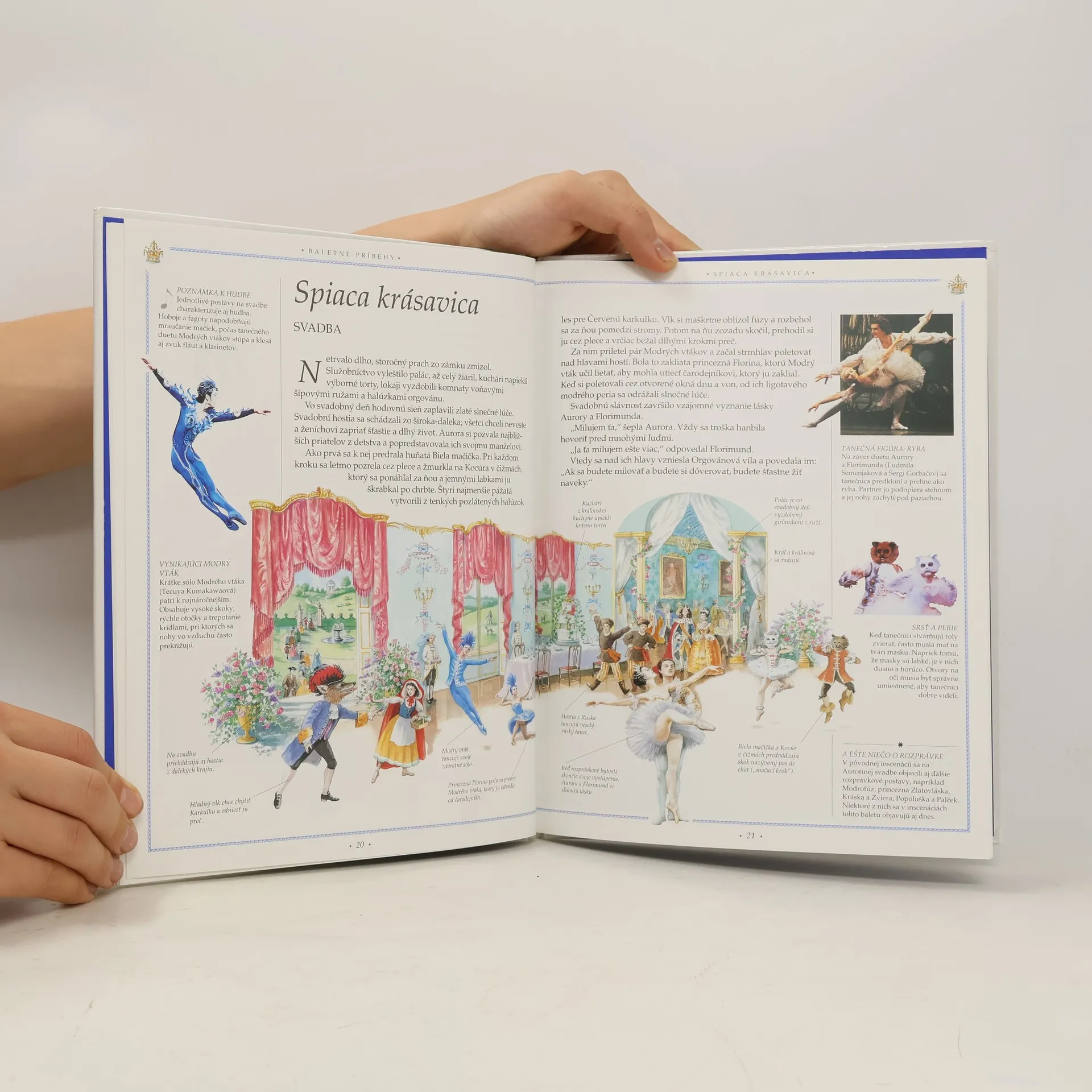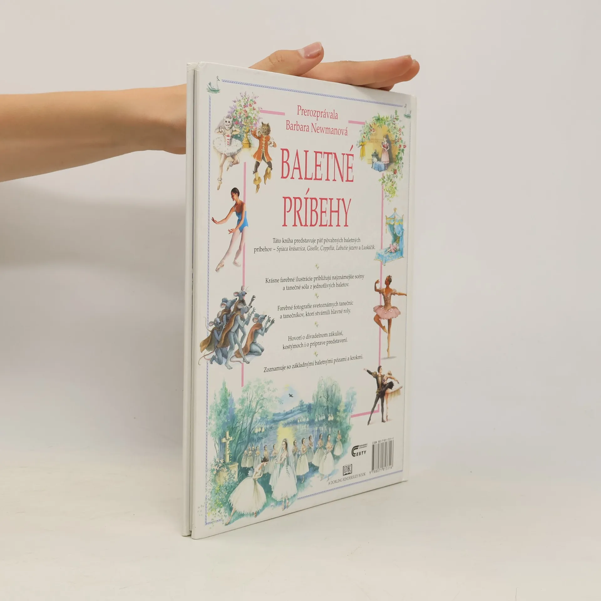 Táto kniha predstavuje päť pôvabných baletných príbehov. Farebné fotografie svetoznámych tanečníc a tanečníkov, ktorí stvárnili hlavné roly. Kniha zoznamuje so základnými baletnými pózami a krokmi. Obsah: Základy baletu, Spiaca krásavica-Krstiny, Oslava narodenín, Sen, Prebudenie, Svadba. Giselle-Na dedine, Zrada, Ríša víl, Víťazstvo lásky. Coppélia-Hádka milencov, V dielni, Splnený sen, Oslava. Labutie jazero-Oslava princovej plnoletosti, Pri jazere, Slávnostný ples, Navždy spolu. Luskáčik-Štedrý deň, Myšia vojna, Cukrová krajina, Cukrová víla.