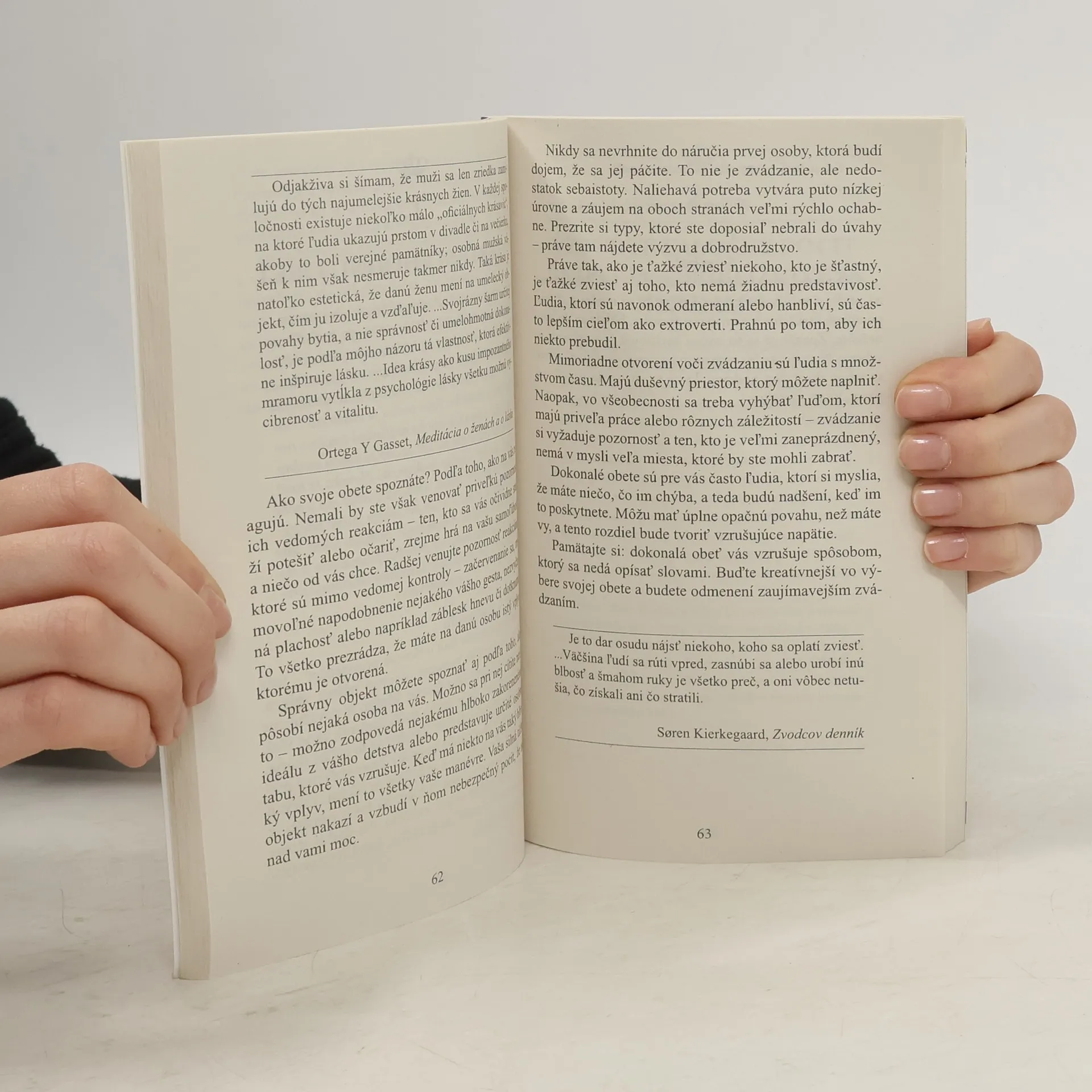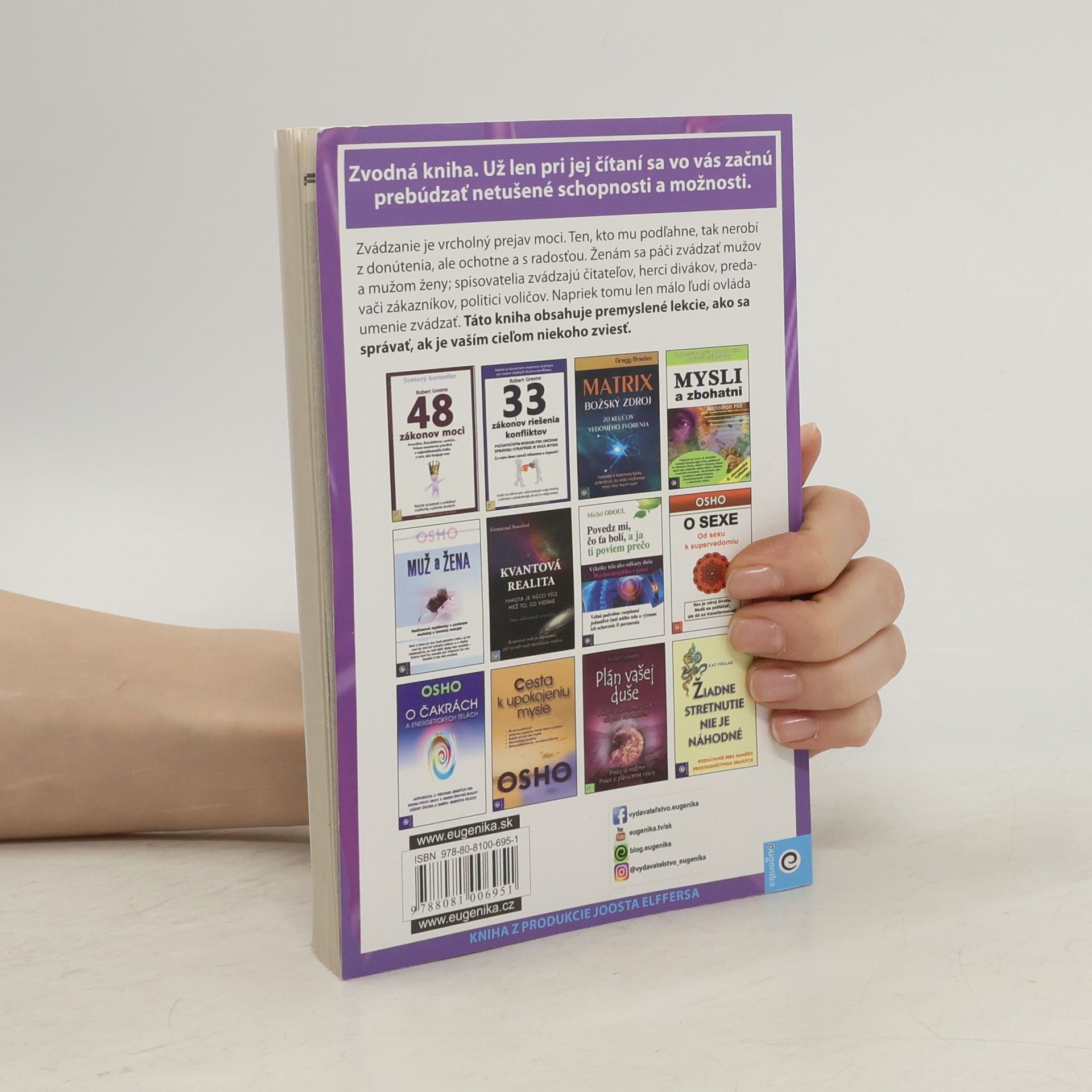Táto kniha je hlavne o psychologickom zvádzaní. Je to veľmi zvodná kniha. Už len pri jej čítaní sa vo vás začnú zobúdzať netušené schopnosti a možnosti. Zvádzanie je vrcholný prejav moci. Ten, kto mu podľahne, tak nerobí z donútenia, ale ochotne a s radosťou. Ženám sa páči zvádzať mužov a mužom ženy; spisovatelia zvádzajú čitateľov, herci divákov, predavači zákazníkov, politici zvádzajú voličov, čiže nás všetkých. A pritom len málo ľudí ovláda umenie zvádzať. Táto kniha obsahuje premyslené lekcie, ako sa správať, ak je vaším cieľom niekoho zviesť. Robert Greene je veľký znalec ľudskej duše. Jeho štýl písania je veľmi inteligentný, kultivovaný, inšpiratívny aj vtipný. Rozpráva o tom, čo je pre človeka lákavé a zvodné, tak pútavo, že už len pri čítaní týchto stránok máme chuť zažiť niečo vzrušujúce, krásne a nezvyčajné. Uvedené dôkladne podložené vysvetlenia sa týkajú univerzálnych ľudských sklonov, túžob a slabostí. Vnímavý čitateľ si z nich ľahko vyvodí všeobecnejšie poznatky, ktoré môže aplikovať aj inde než v oblasti erotiky a lásky. Zvádzanie je veľmi mocná psychologická hra. Múdry autor preto nezabúda na na dôležité varovania a upozornenia. Hlavným cieľom je totiž užívať si život nad rámec všednosti, povinností a obmedzení.