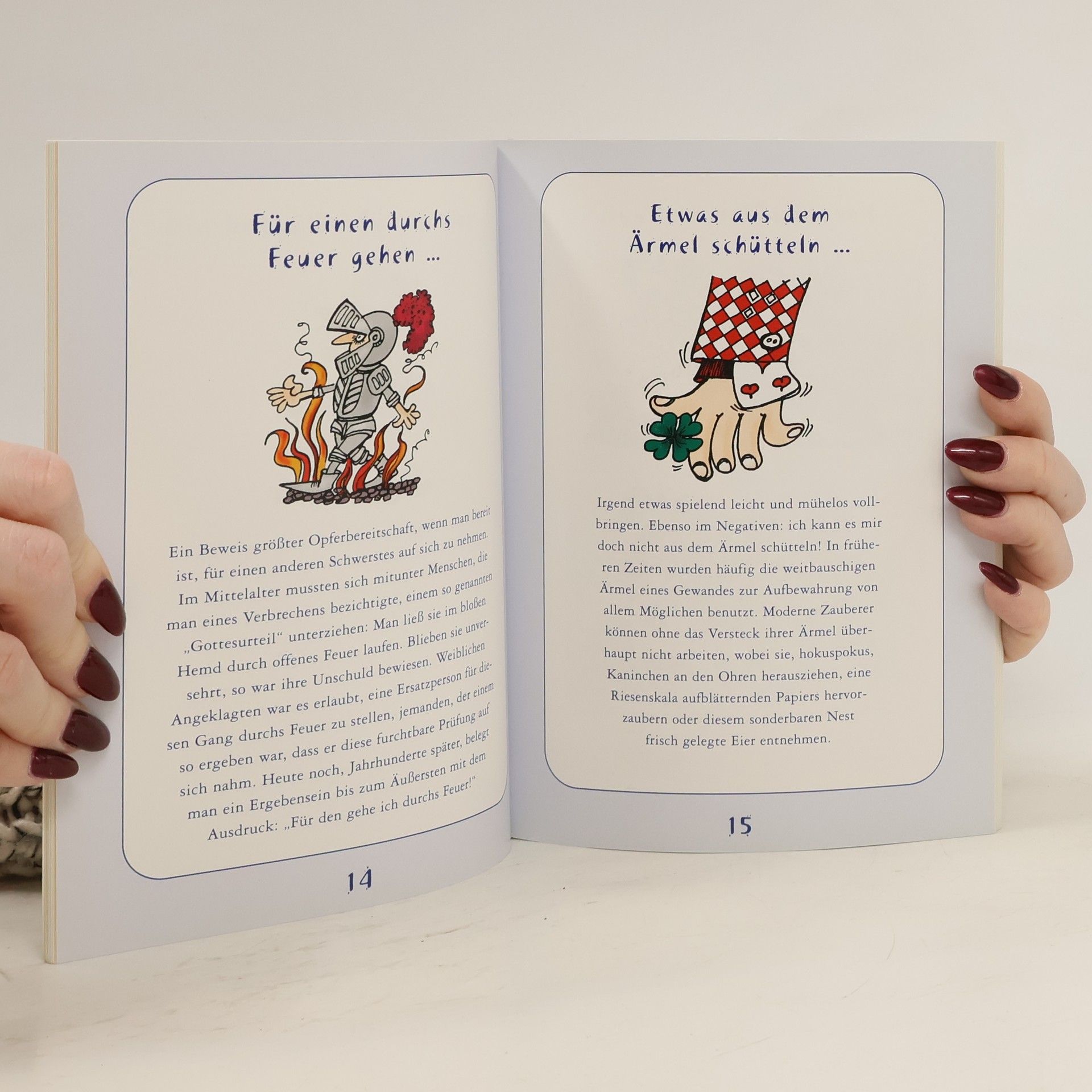 Wenn Sie dieses Buch Hals über Kopf kaufen, dann werden Sie wahrscheinlich ganz aus dem Häuschen sein, denn das Buch erklärt Ihnen nicht nur diese beiden Ausdrücks sondern insgesamt 52 interessante Redensarten, die in unseren Sprachgebrauch übergegangen sind. Soviel sei gewährt, der Kauf des Buches war nicht für die Katz und der Inhalt hat Hand und Fuß.