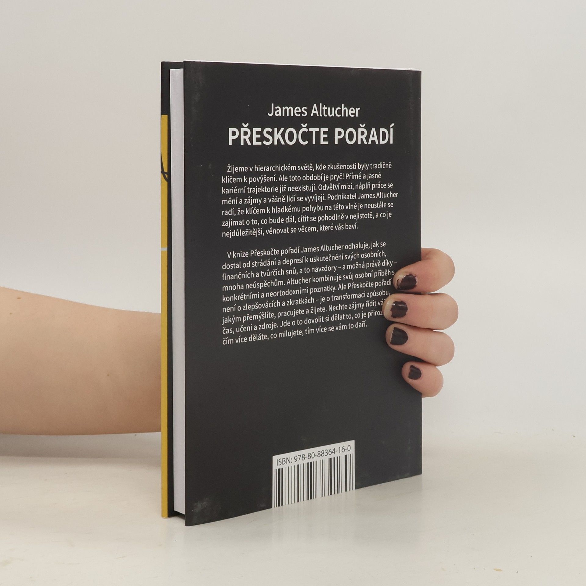 Žijeme v hierarchickém světě, kde zkušenosti byly tradičně klíčem k povýšení. Ale toto období je pryč! Přímé a jasné kariérní trajektorie již neexistují. Odvětví mizí, náplň práce se mění a zájmy a vášně lidí se vyvíjejí. Podnikatel James Altucher radí, že klíčem k hladkému pohybu na této vlně je neustále se zajímat o to, co bude dál, cítit se pohodlně v nejistotě, a co je nejdůležitější, věnovat se věcem, které vás baví. V knize Přeskočte pořadí James Altucher odhaluje, jak se dostal od strádání a depresí k uskutečnění svých osobních, finančních a tvůrčích snů, a to navzdory – a možná právě díky – mnoha neúspěchům. Altucher kombinuje svůj osobní příběh s konkrétními a neortodoxními poznatky. Ale Přeskočte pořadí není o zlepšovácích a zkratkách – je o transformaci způsobu, jakým přemýšlíte, pracujete a žijete. Nechte zájmy řídit váš čas, učení a zdroje. Jde o to dovolit si dělat to, co je přirozené; čím více děláte, co milujete, tím více se vám to daří.